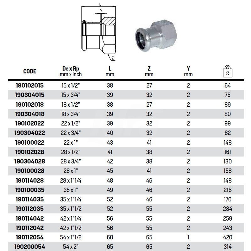 Raccord taraudé 190 InoxPres F 28 3/4" - 190304028 - Raccorderie Metalliche