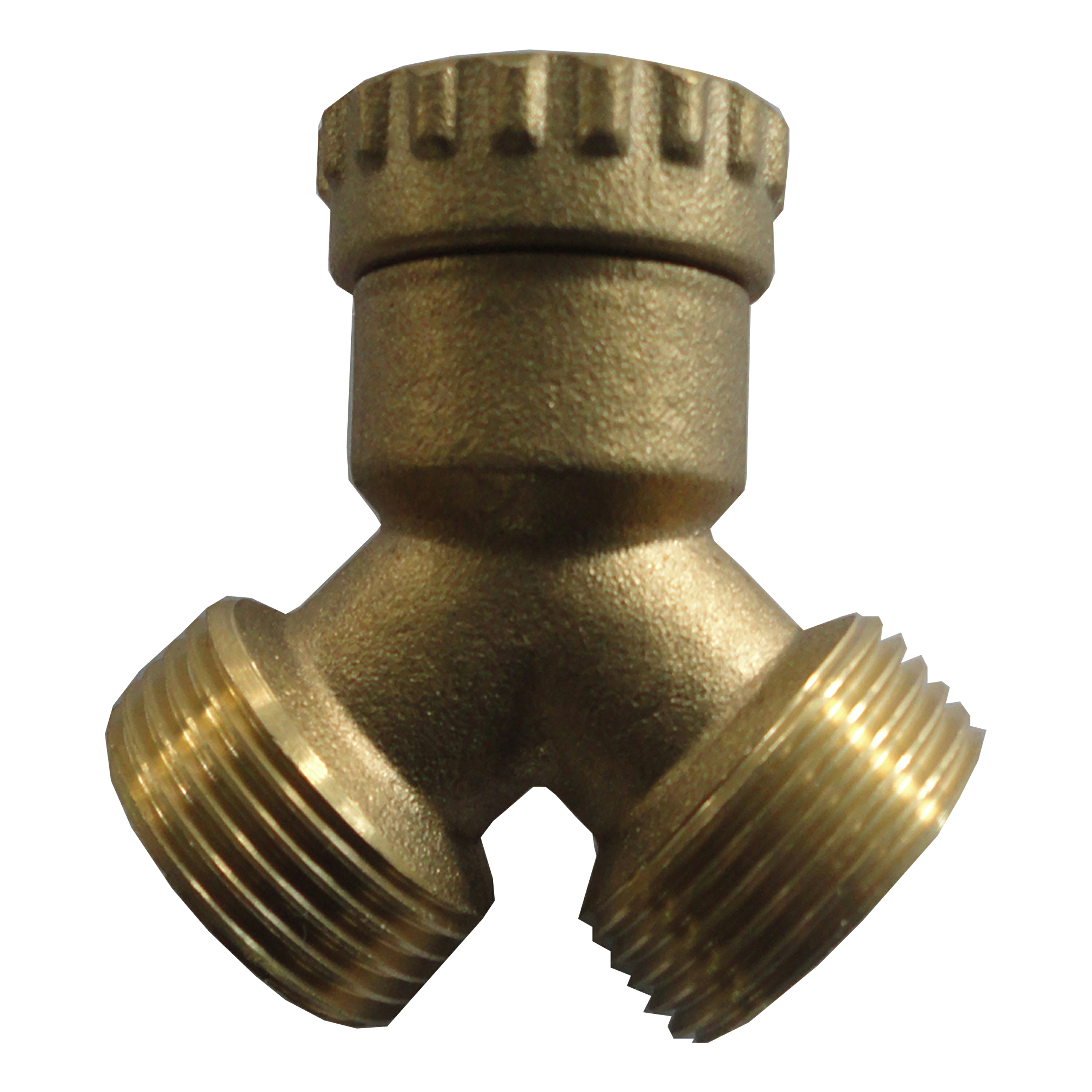 Connecteur double Equation pour machine à laver en laiton et cuivre avec entrée et sortie 3/4" et connexion femelle/mâle.