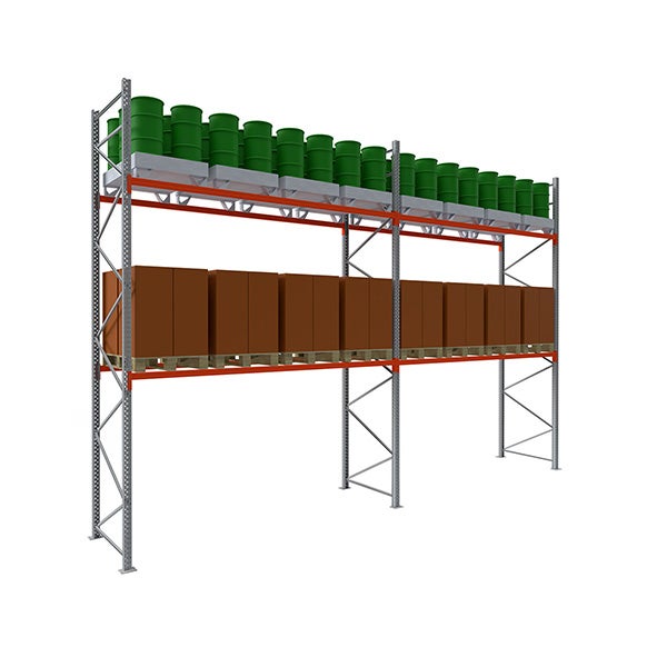 - Conçu pour le stockage de charges lourdes et volumineuses comme des palettes, caisses-palettes et des cuves IBC.