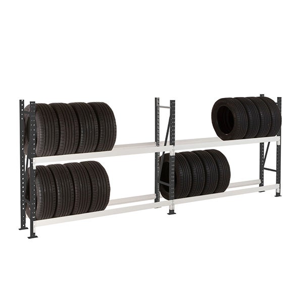 - Rayonnage pour pneus poids lourds et grandes tailles sur 2 niveaux.