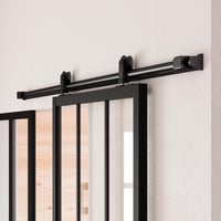 Ce rail en aluminium noir vous permettra d'installer une porte coulissante, et vous permettra d'optimiser et de gagner de l'espace dans votre maison. Sa finition satinée et ses roulettes apparentes, associées à nos portes ""Atelier"" d'Artens, donneront à votre intérieur un style industriel. Doté d'un système de fermeture douce, ce rail coulissant en aluminium se ferme en douceur et en silence. Il peut être découpé sur mesure pour s'adapter à votre projet. Le rail Loft permet d'installer une porte coulissante de 70 cm à 93 cm (max. 50 kg), d'une épaisseur comprise entre 25 et 40 mm. La quincaillerie nécessaire à l'installation est incluse. Disponible en différentes couleurs. Porte vendue séparément.