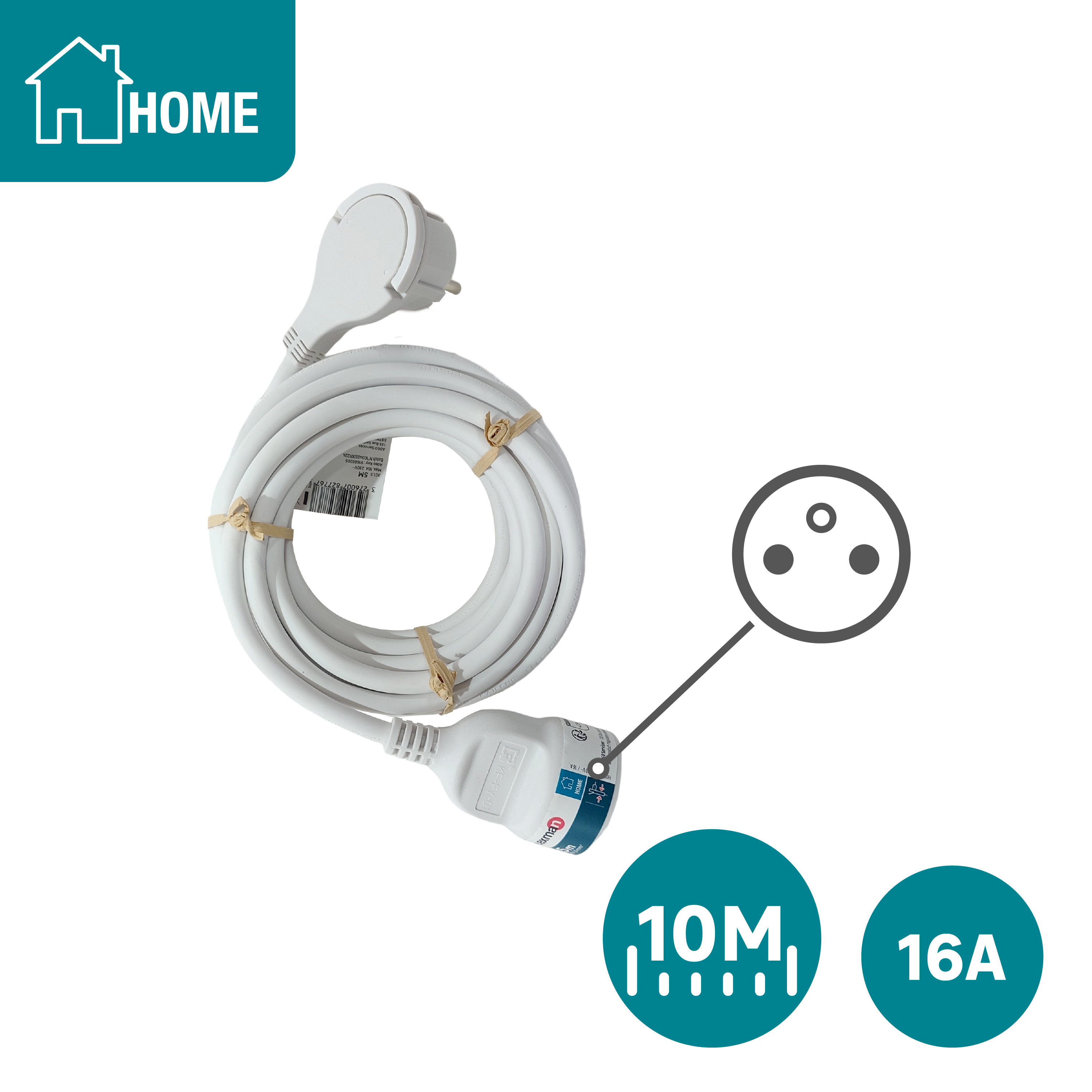 Rallonge électrique 10M à tête plate avec terre LEXMAN : Branchez vos appareils (lampes, chargeurs) à une prise de courant. Grâce à sa forme plate, elle s'adapte parfaitement aux espaces restreints comme par exemple derrière un meuble. Couleur blanche discrète. Ampérage : 16A. Longueur de câble : 10M. Pour une utilisation en intérieur. Garantie 5 ans.