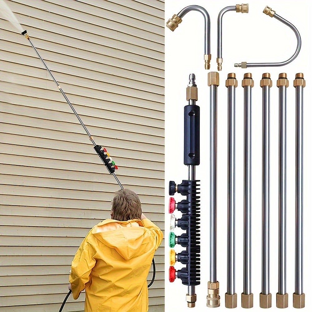 Rallonge pour nettoyeur haute pression avec 5 embouts de buse, 1 tige courbée pour nettoyeur de gouttières, raccord rapide 6,35 mm, 4 000 psi