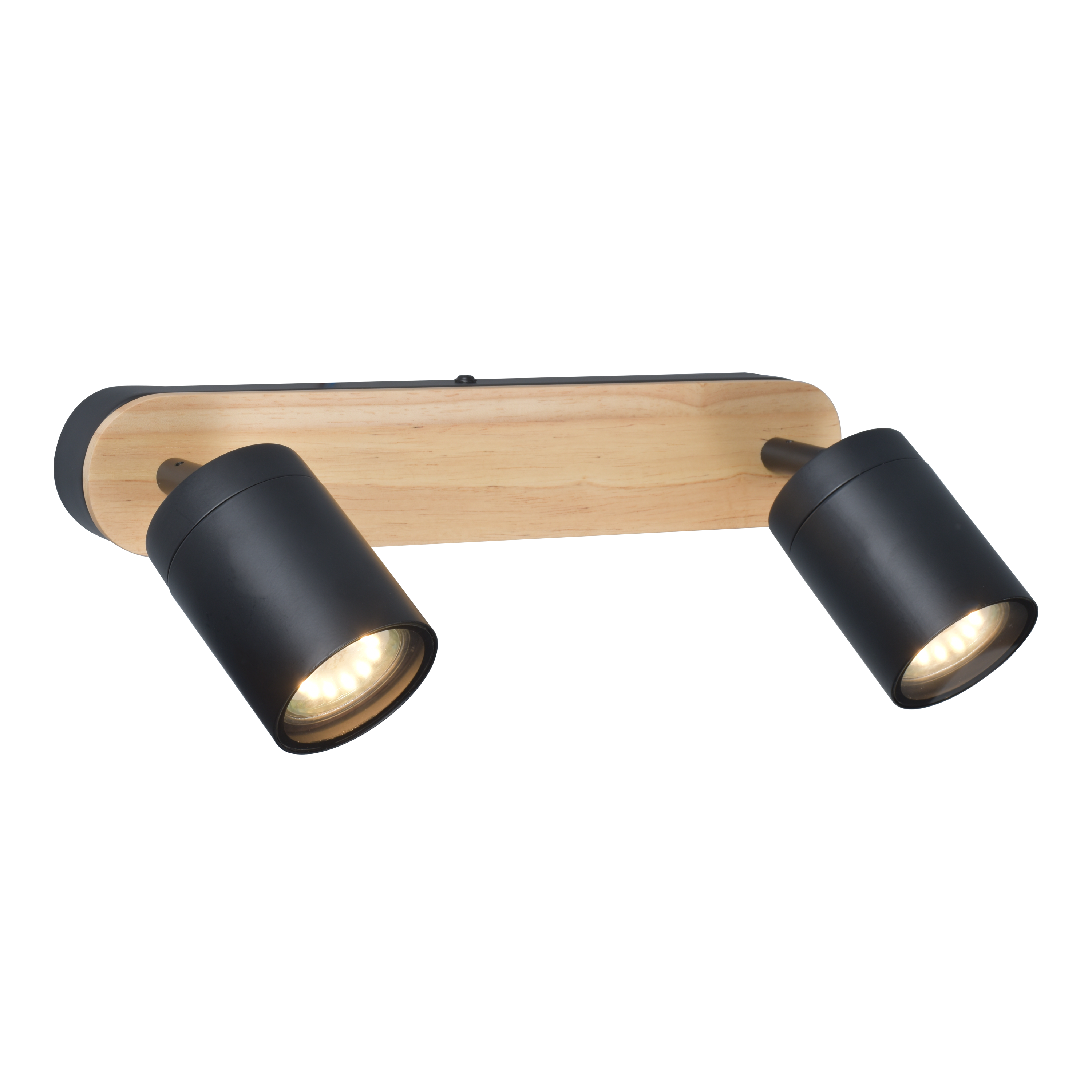 Rampe 2 spots salle de bain Malabe GU10 max 10W, bois / métal noir, INSPIRE