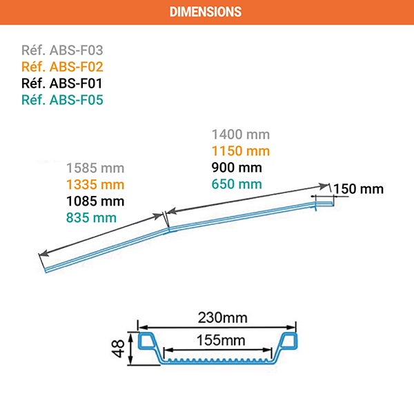 Rampe de chargement pliable - Longueur 1485mm / Largeur int. 155mm - Hauteur à franchir de 380mm - Vendue à l'unité - ABS-F05