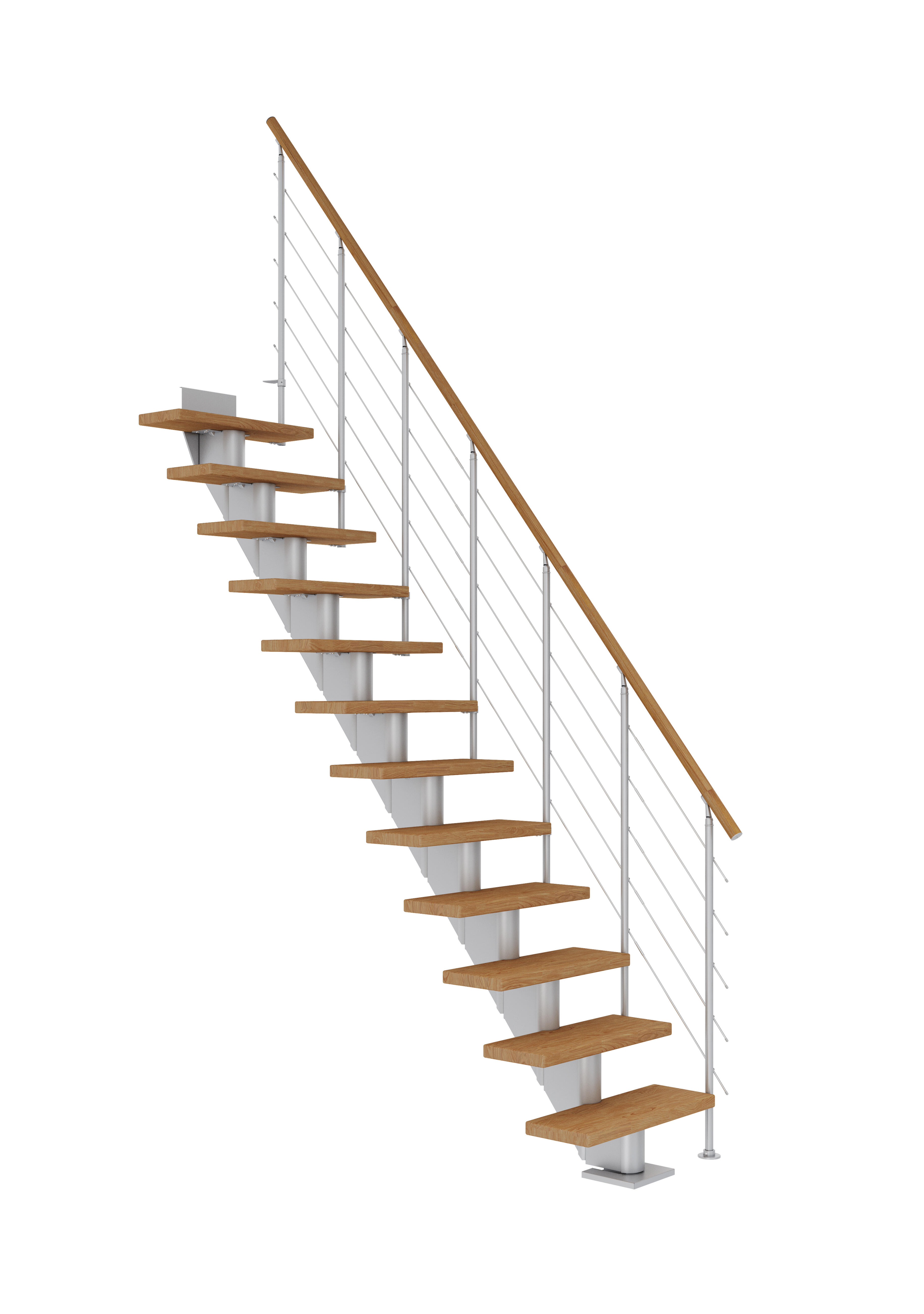 Rampe STYLE 6 - Lisses horizontales Ø6 mm pour escalier chene huilé gris 13-14 marches