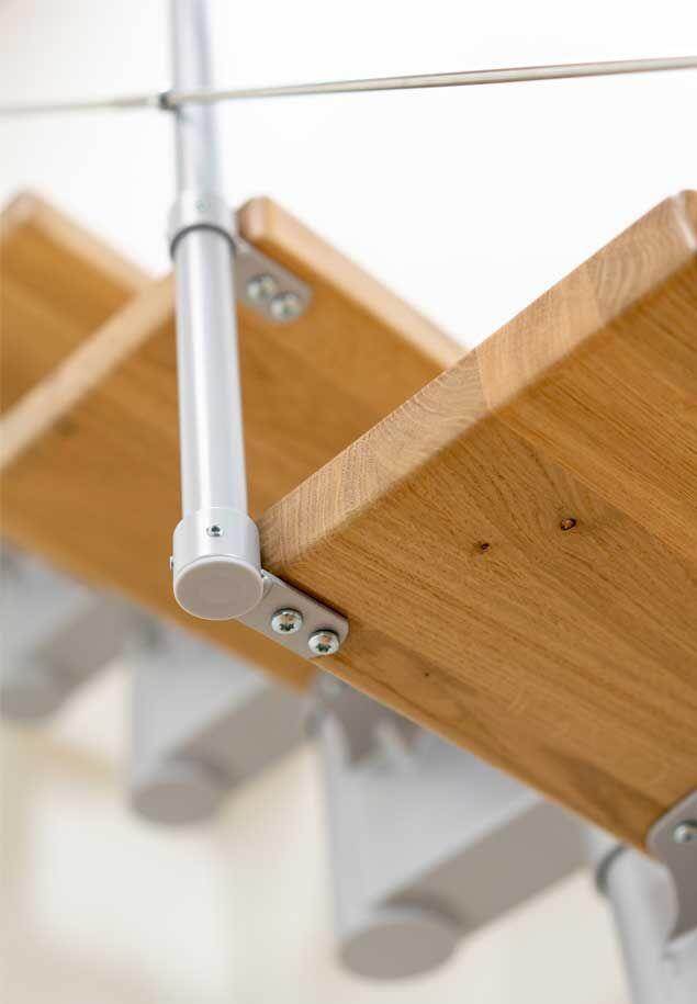 Rampe STYLE 6 - Lisses horizontales Ø6 mm pour escalier chêne verni gris 15 marches
