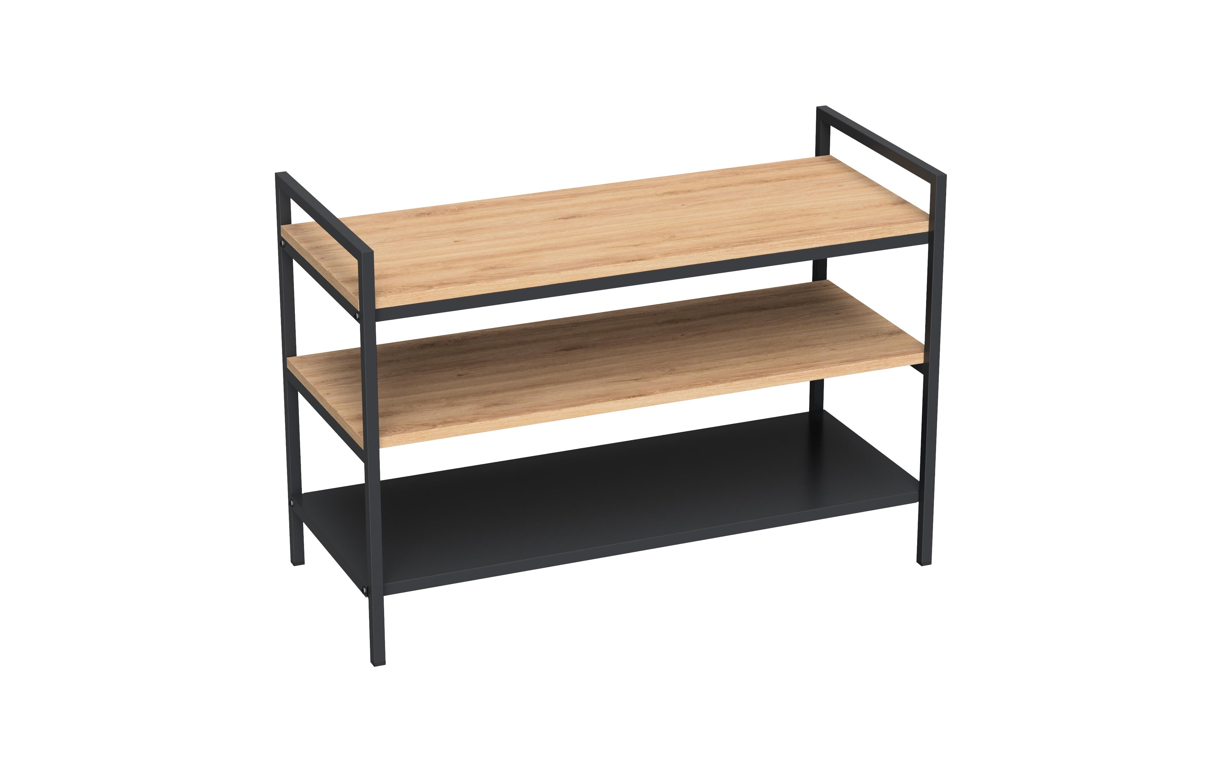 Ce porte-chaussures est parfait pour ranger vos chaussures dans votre entrée ou votre chambre. Son design suit la tendance industrielle avec une structure noire et des panneaux en bois. Cette étagère peut également être utilisée comme un banc pour poser vos chaussures. Il est très solide et peut supporter jusqu'à 12 paires de chaussures. Les dimensions sont conformes au programme SPACEO HOME pour intégrer facilement ce meuble à chaussures dans votre maison.