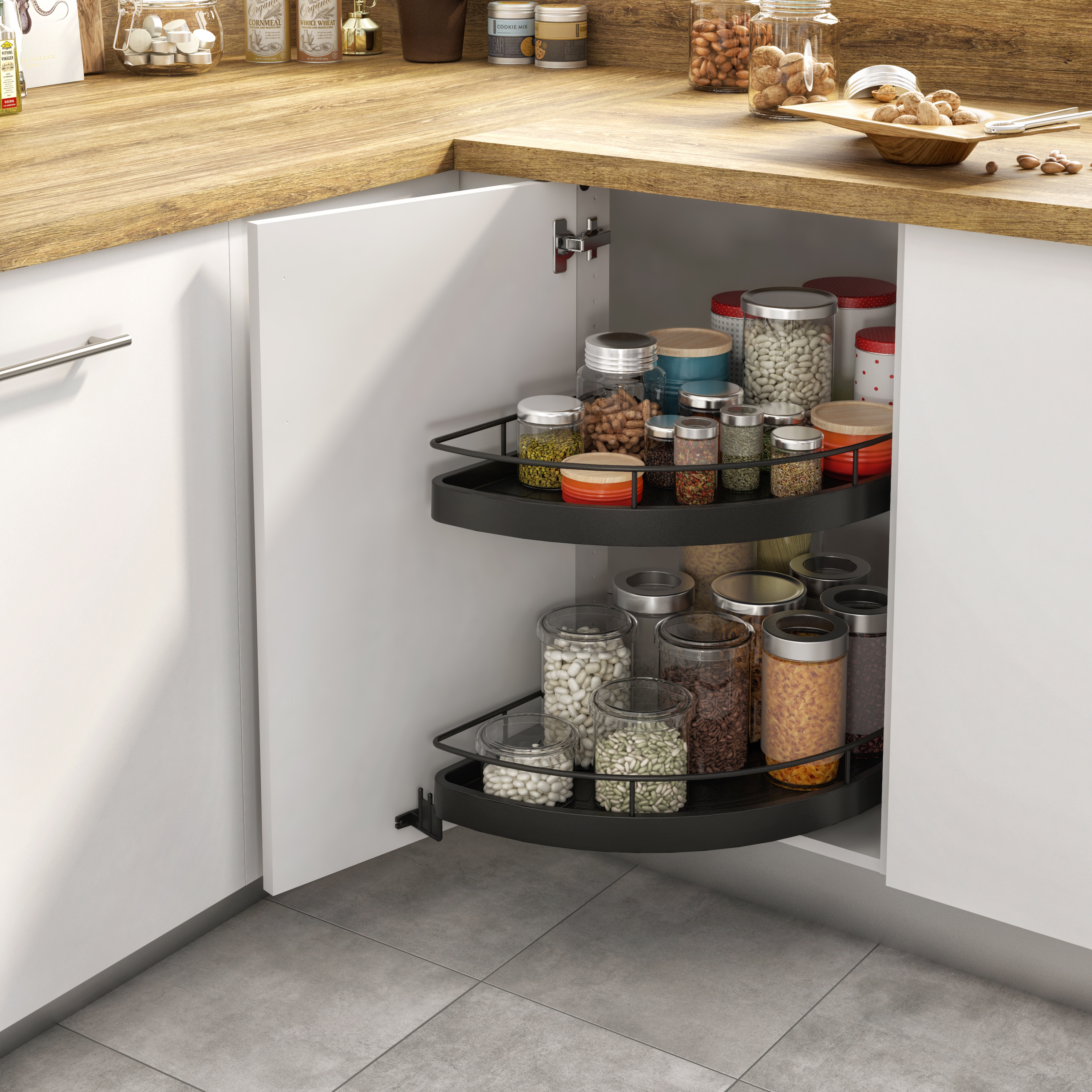 Rangement d'angle, demi-lune pour meuble d'angle bas