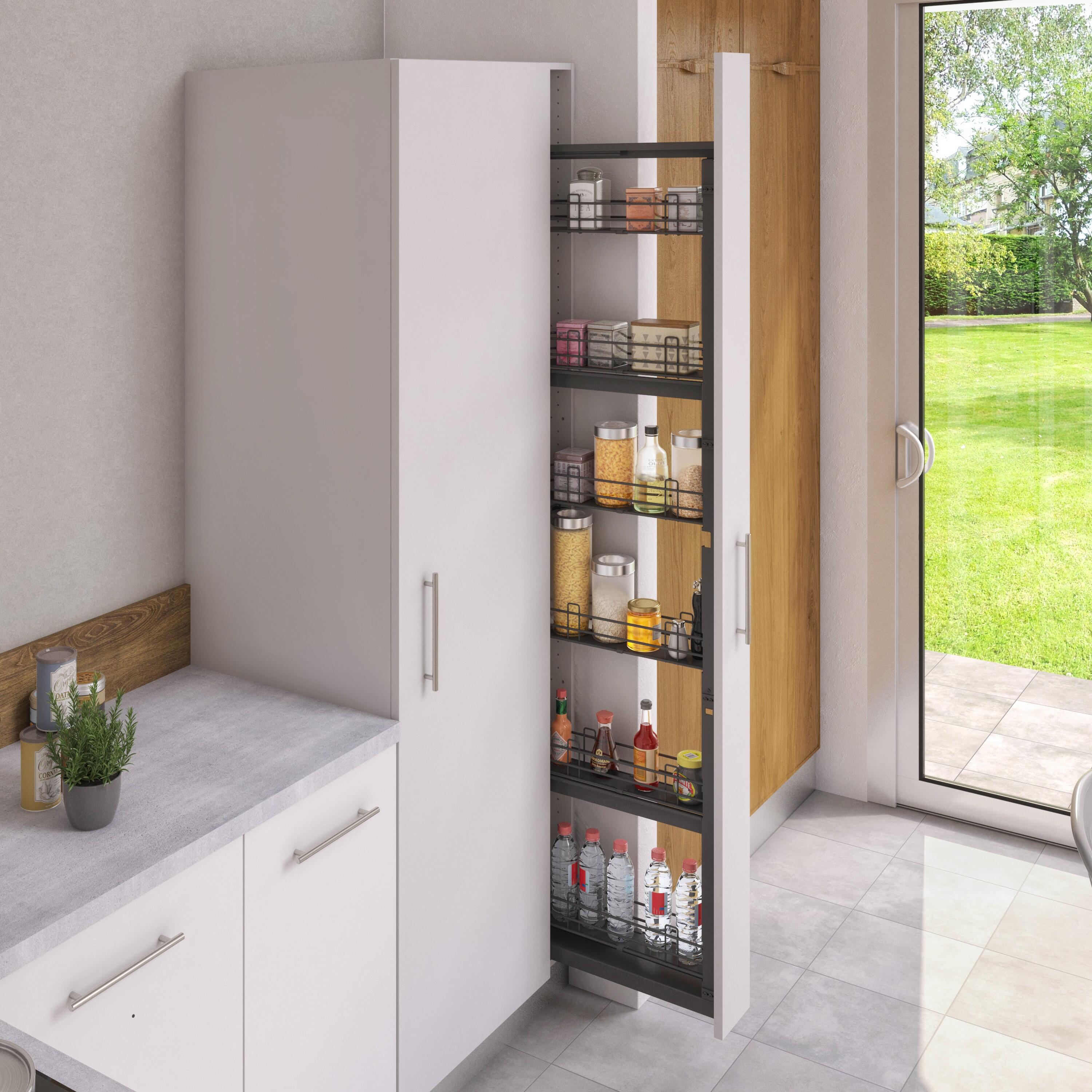 Idéal pour ranger les bouteilles et vos aliments secs, cet aménagement coulissant s'intègre dans une colonne Delinia iD de largeur 15 cm. Fini la place perdue ou les fileurs superflus! Ce rangement astucieux vous permet d'optimisez l'espace de votre pièce. Il est composé de 6 plateaux supportant chacun jusqu'à 4 kg. Ses coulisses à billes amorties permettent des ouvertures/fermetures douces et silencieuses et une qualité d'usage impeccable. L'aménagement est en sortie totale ce qui permet d'accéder au contenu du rangement de manière confortable.