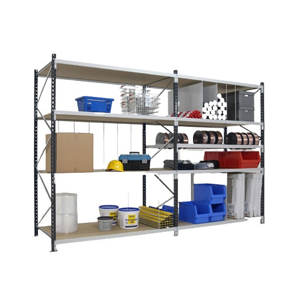 - Rayonnage mi-lourd modulable, polyvalent et évolutif sur 4 niveaux pour le stockage manuel.