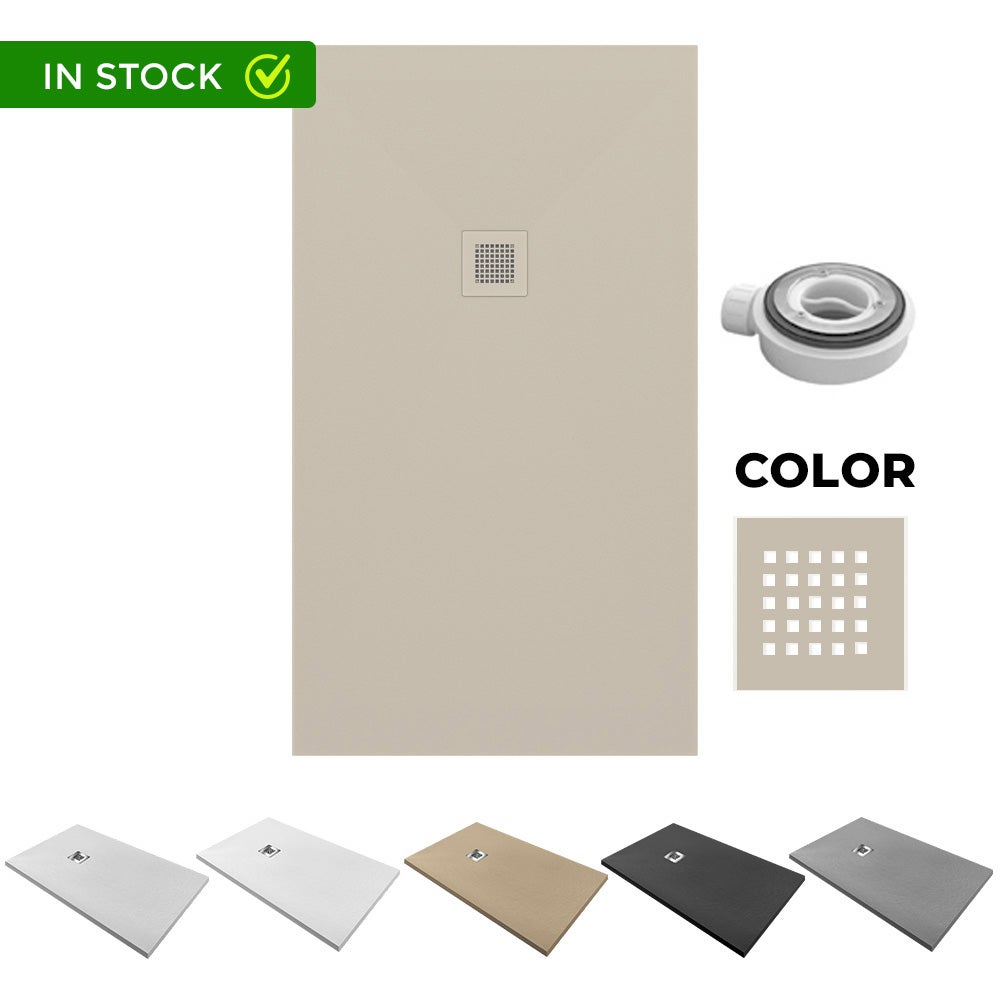 Receveur de Douche en Résine Antidérapant | Bonde d’Évacuation + Grille de Couleur | Texture Pierre | Couleur Beige | 140x90 cm