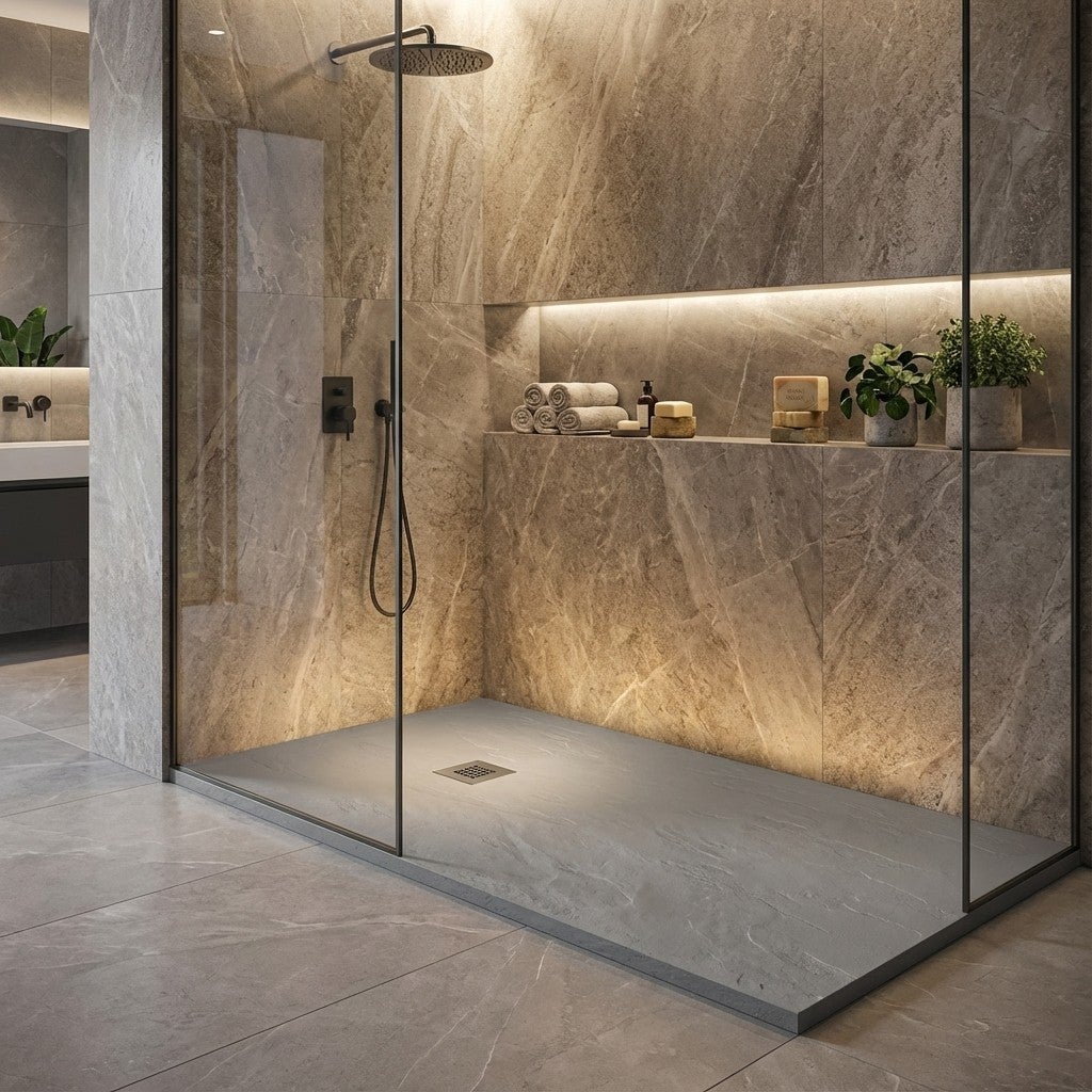 Receveur de douche en résine couleur ciment 70x160 cm avec grille et bonde - Showey