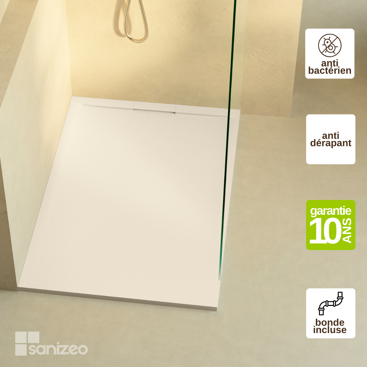 Receveur de Douche Extraplat 160x90x3cm Beige en Résine Minérale - Antidérapant, Texture Ardoise - RAGNAR LAVABERG