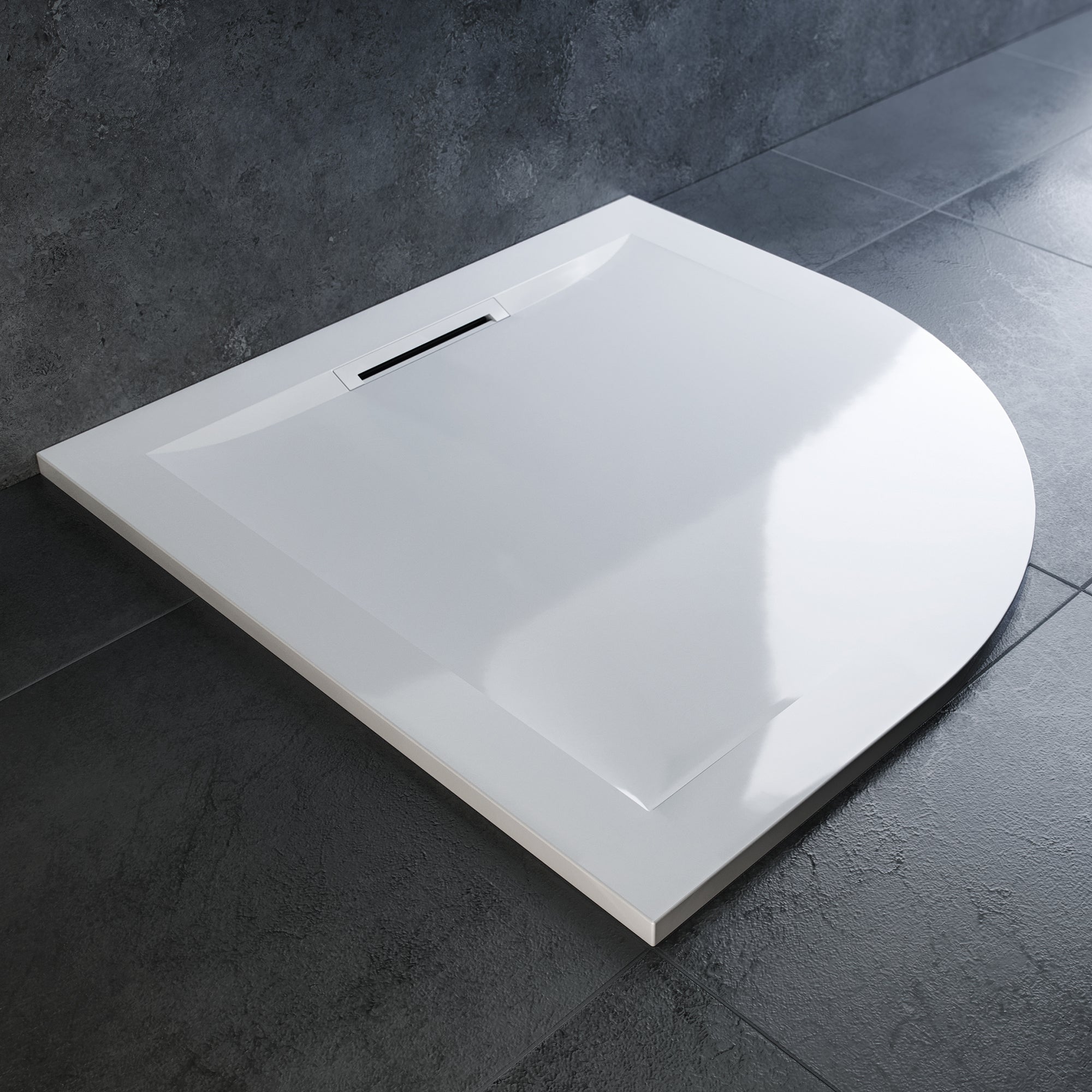 Receveur de douche, extraplat, résine 90 x 90 cm, 1/4 cercle antiglisse