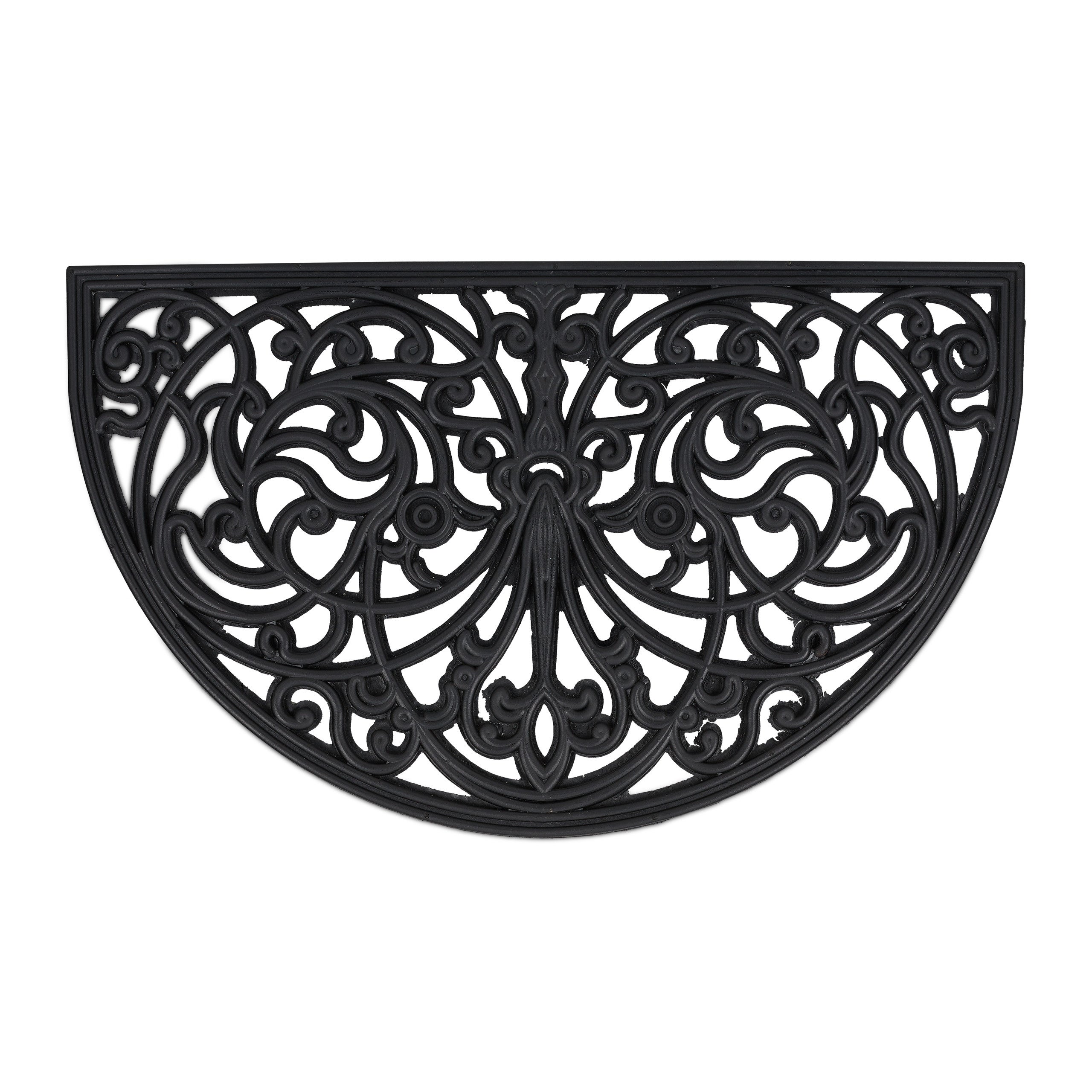 Relaxdays Paillasson caoutchouc, 75 x 45 cm, antidérapant, résistant, extérieur, tapis d’entrée, ornements, noir