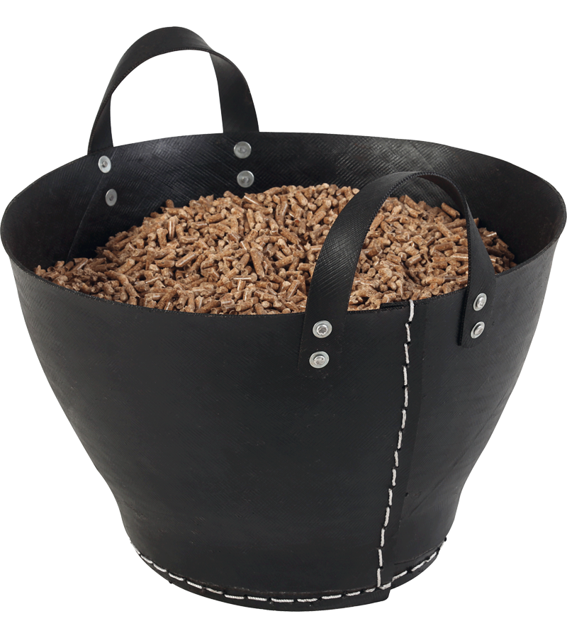 avec sa matière ultra-résistante, en pneu recyclé, il convient aussi bien aux bûches qu'aux granulés