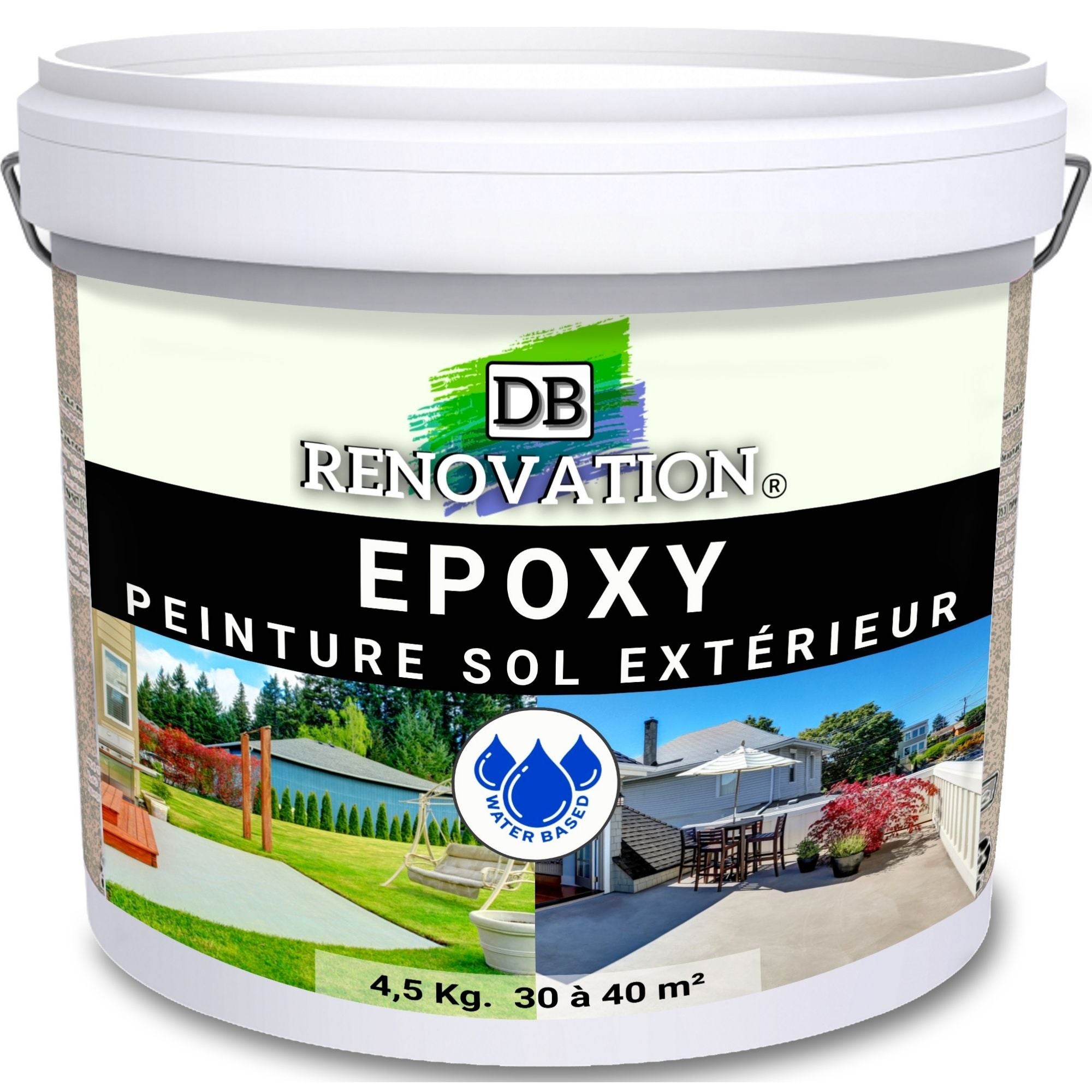 RESINE EPOXY DB-225 Peinture sol Terrasse béton - Haute résistance Extérieur - En phase aqueuse - Prêt à l'emploi - Très belle finition satiné.
