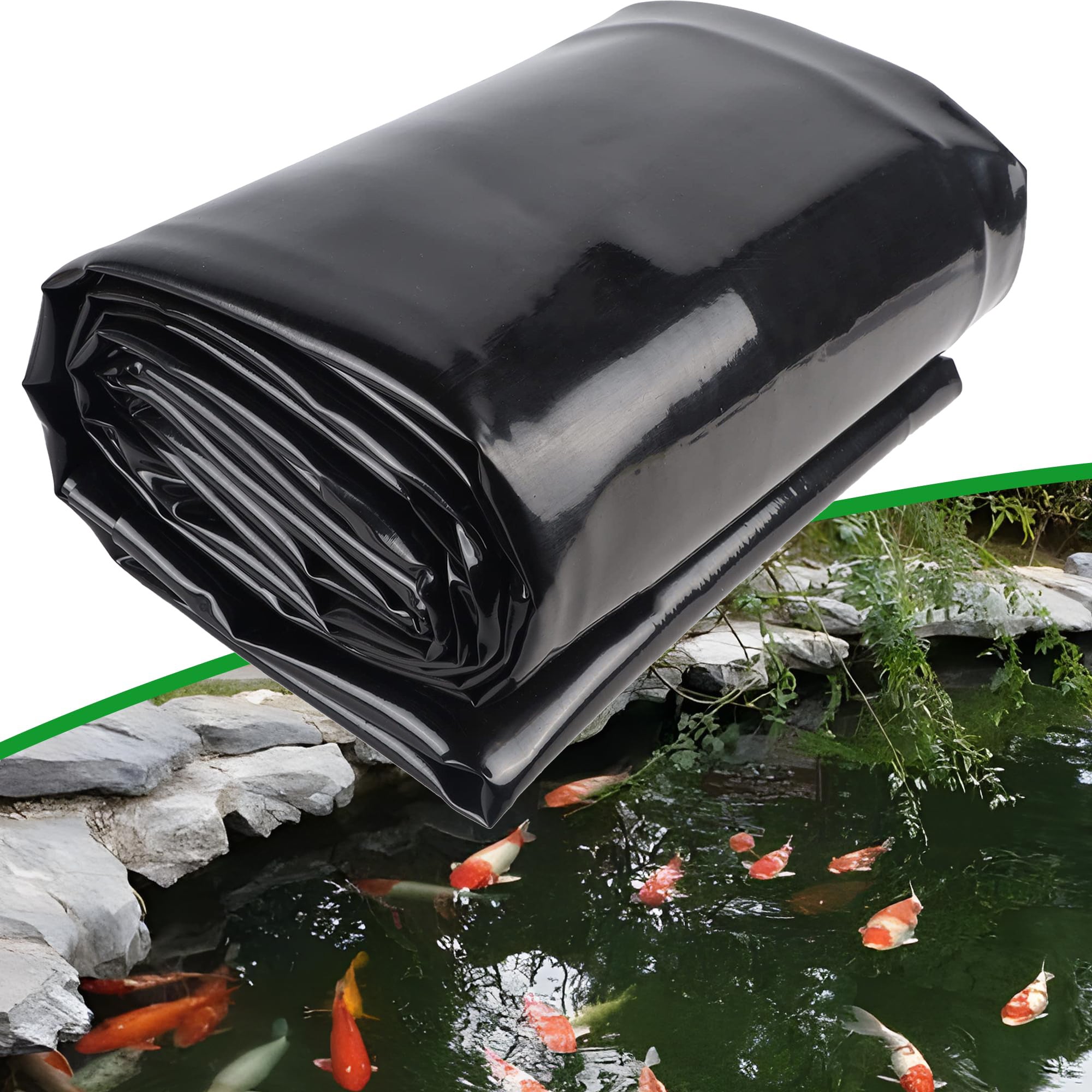 DURABLE : le revêtement de l'étang à carpes koï a une épaisseur de 20 mil, capable d'absorber les chocs, offrant une résistance supérieure à la déchirure, à la perforation, à la prévention des fuites, à la corrosion et à la résilience au froid et à la chaleur. Il est suffisamment robuste pour résister aux conditions météorologiques extrêmes. Comparé aux autres revêtements de bassin de 14,5 mil et 4,5 mil, le nôtre est plus épais et plus durable, garantissant une utilisation à long terme avec un entretien approprié.