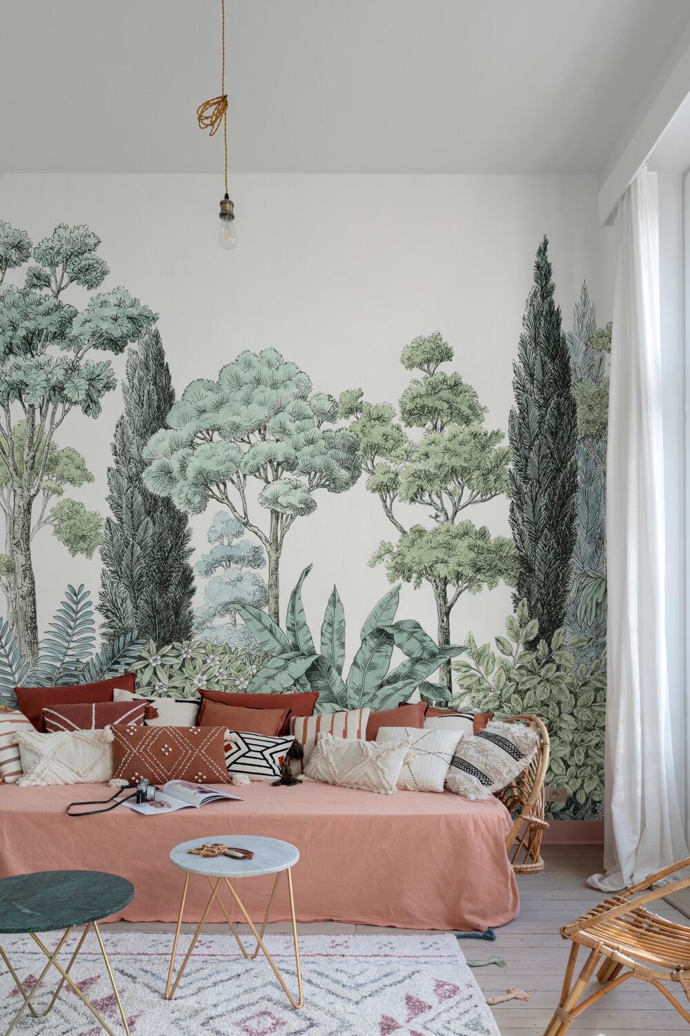 Le papier peint panoramique s’installe parfaitement dans un salon, une chambre, une entrée ou même un bureau. Il peut être posé sur un seul pan de mur ou dans une niche pour délimiter un espace. Dans une chambre, il est souvent utilisé en tête de lit.