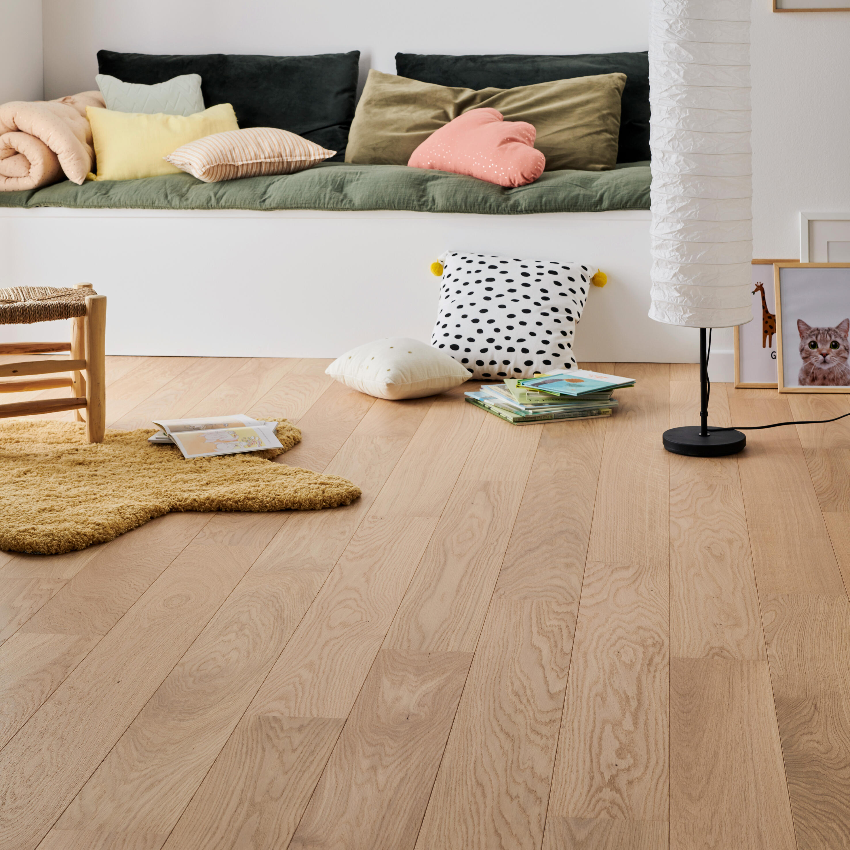 Découvrez notre large gamme de parquet contrecollé et de parquet massif. Le parquet est un revêtement de sol intemporel qui apporte du charme et de l'authenticité à votre intérieur. Toujours tendance, il existe en plusieurs essences de bois : le parquet chêne conviendra plutôt pour vos pièces de vie. Les bois exotiques comme le teck, le bambou ou l'acajou en parquet de salle de bains. Faites votre choix parmi de nombreux coloris; bois blond, bois naturel, bois foncé, bois blanchi... et motifs de pose : parquet chevron, parquet point de Hongrie, parquet bâton rompu ou encore pose à la française. Il existe différents types de pose : parquet flottant, collé ou cloué. *Nous limitons au plus strict minimum l’utilisation des composants chimiques afin de préserver la qualité de l’air intérieur*