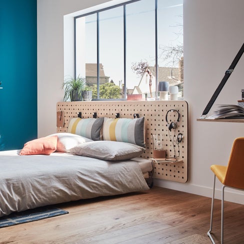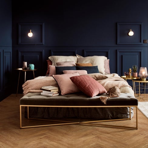 Dans une chambre, on peut oser la peinture bleue foncée, comme le bleu nuit ou le bleu pétrole. À la fois puissantes et apaisantes, ces couleurs créées une ambiance chic et glamour. Pour jouer la carte de la tendance, associez ces couleurs avec des teintes plus neutres comme le beige ou le rosé poudré.Voir notre sélection de couleurs
