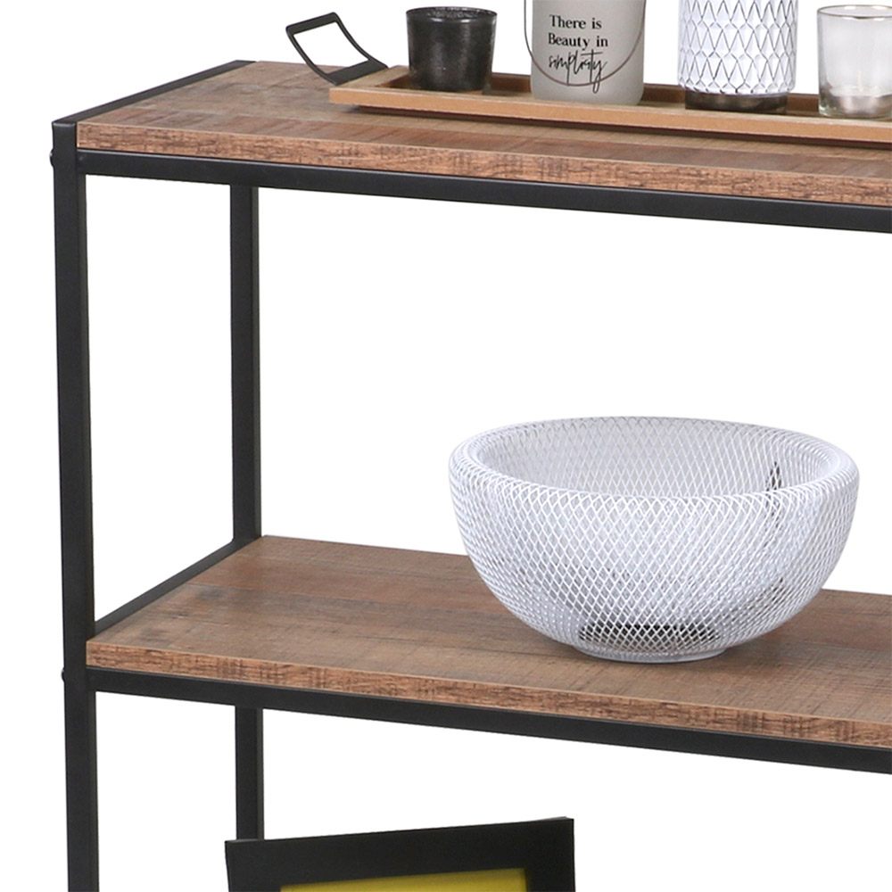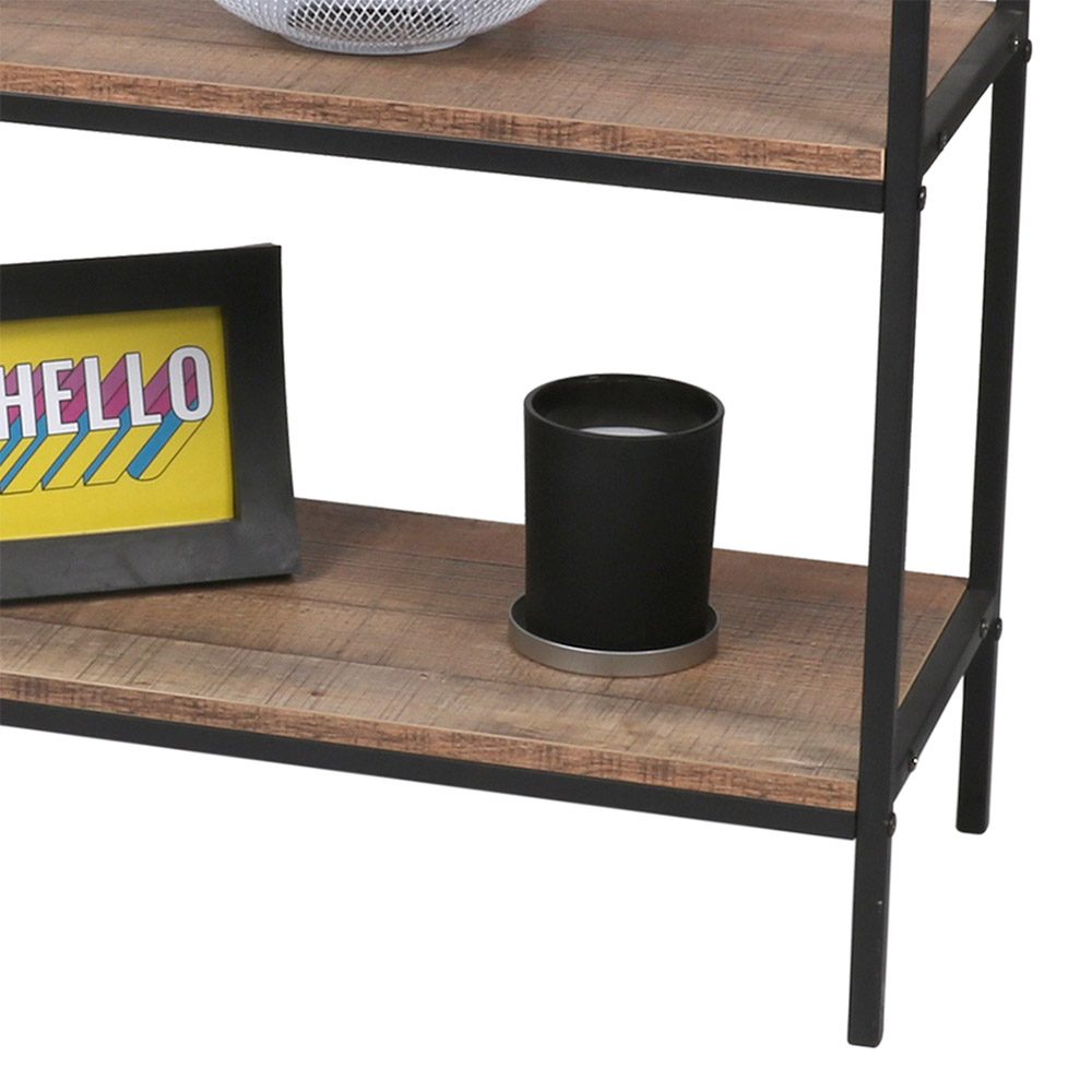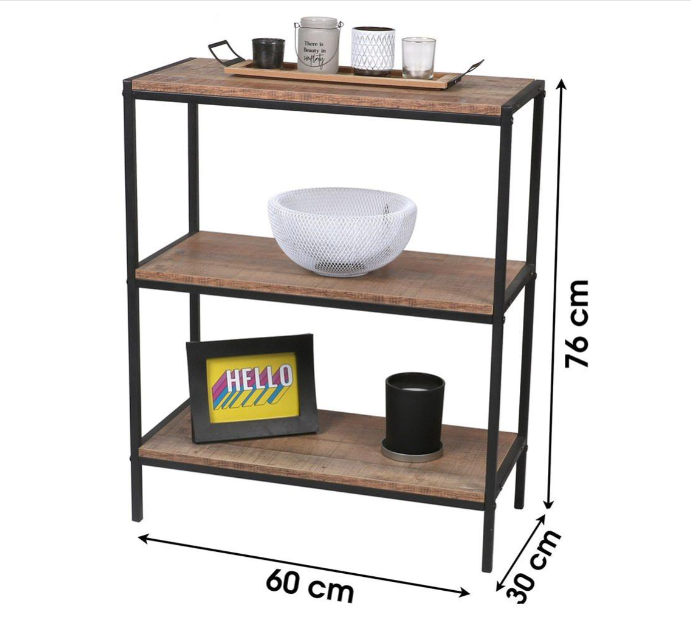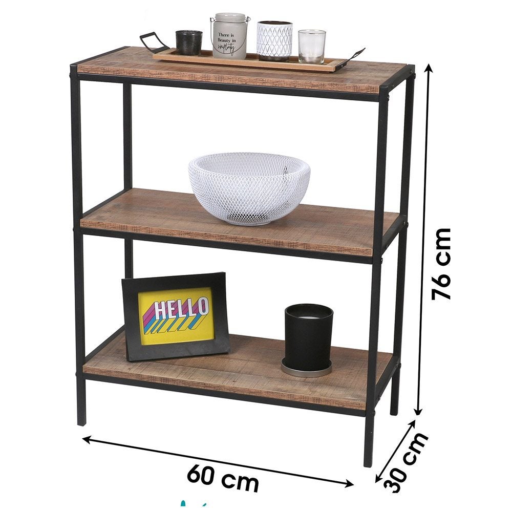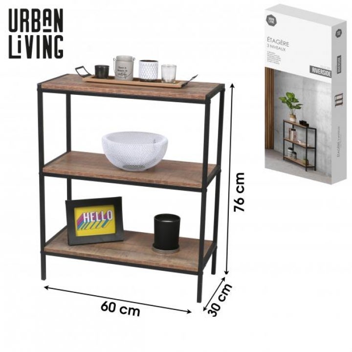 Étagère 3 niveaux "RIVERSIDE" – 60 x 30 x H76 cm – Chêne foncé & métal noir Apportez une touche industrielle et élégante à votre intérieur avec l’étagère "RIVERSIDE". Composée de 3 étagères spacieuses en panneaux effet chêne foncé, elle est idéale pour exposer vos livres, plantes, objets de décoration ou souvenirs de voyage. Ses pieds en métal noir apportent à la fois stabilité et modernité, s’intégrant parfaitement dans tous les styles de décoration : loft, contemporain ou vintage. Caractéristiques : Dimensions : 60 cm (L) x 30 cm (P) x 76 cm (H) Structure : Pieds en métal noir, finition mate Plateaux : Panneaux MDF décor chêne foncé Nombre de niveaux : 3 étagères Style : Industriel / Moderne / Minimaliste Utilisation : Salon, bureau, chambre, entrée... Compacte mais fonctionnelle, cette étagère est parfaite pour optimiser l’espace tout en apportant une note décorative chaleureuse et tendance.