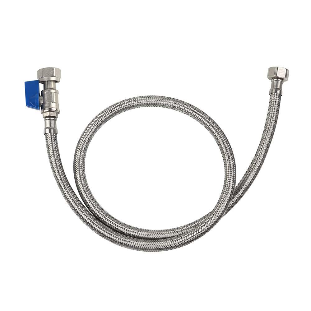 Robinet d'arrêt droit femelle écrou tournant 15/21 FLEXSTOP serti avec un flexible de raccordement tressé inox 100 cm - filetage femelle écrou tournant 15/21. Ouverture et fermeture 1/4 de tour.
