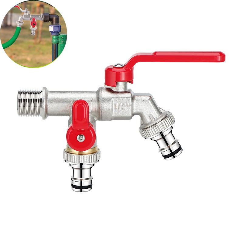 Robinet d'arrosage multifonction 1 en 2 pour machine à laver, jardin, pelouse, dents externes de 20 mm (rouge)
