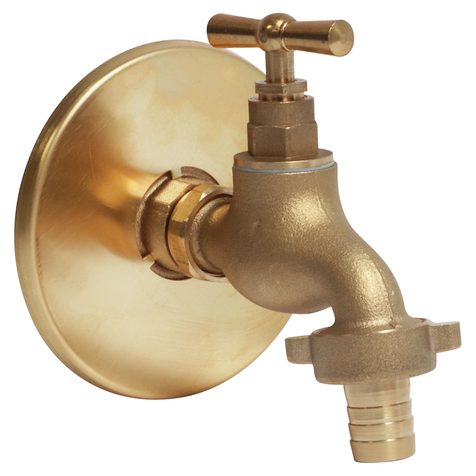 Robinet d'arrosage orientable poignée plate 15/21-20/27 + Applique murale laiton brut