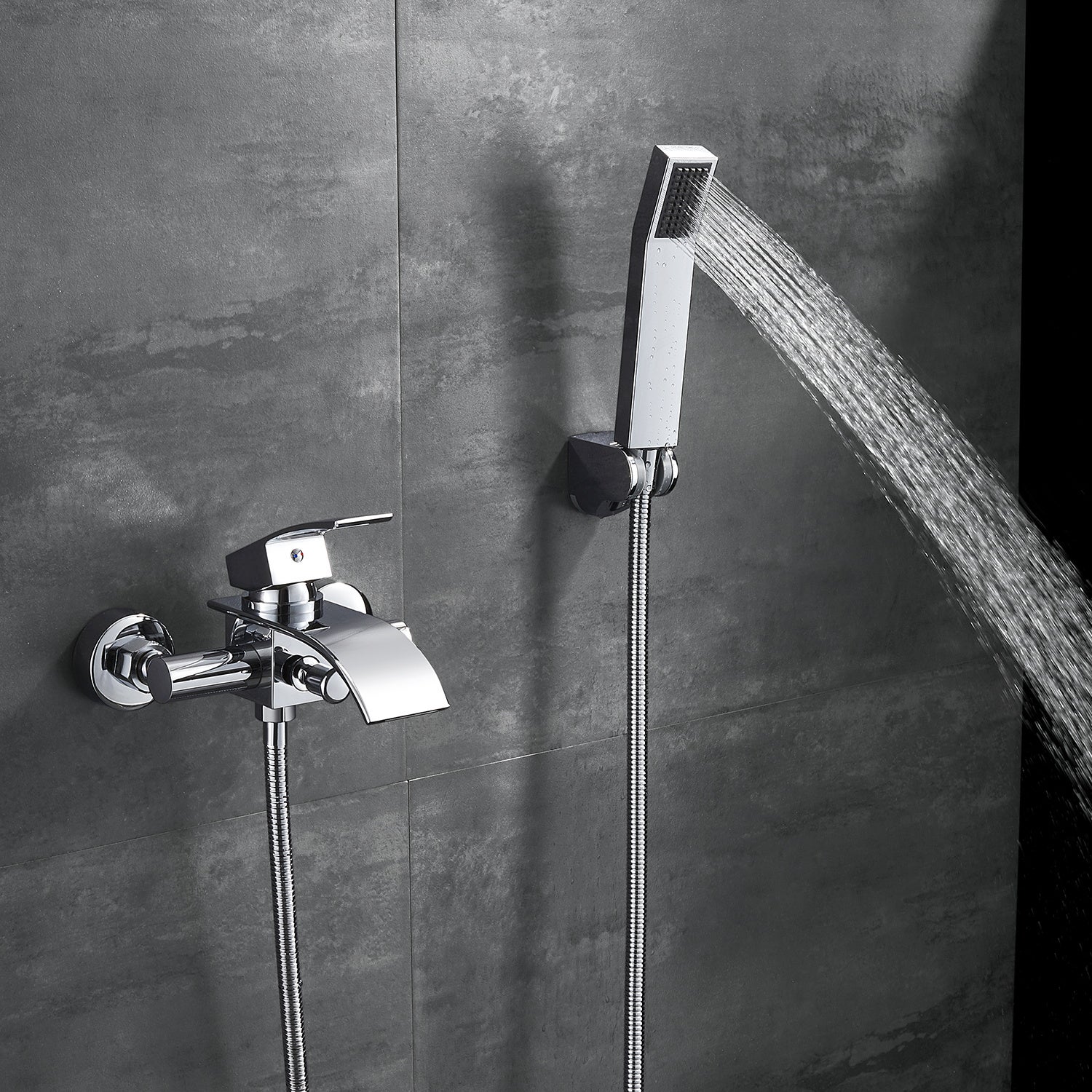 Robinet de Bain Monocommande pour Baignoire Montage Cascade Mitigeur Douche avec Douche à Main Chromé