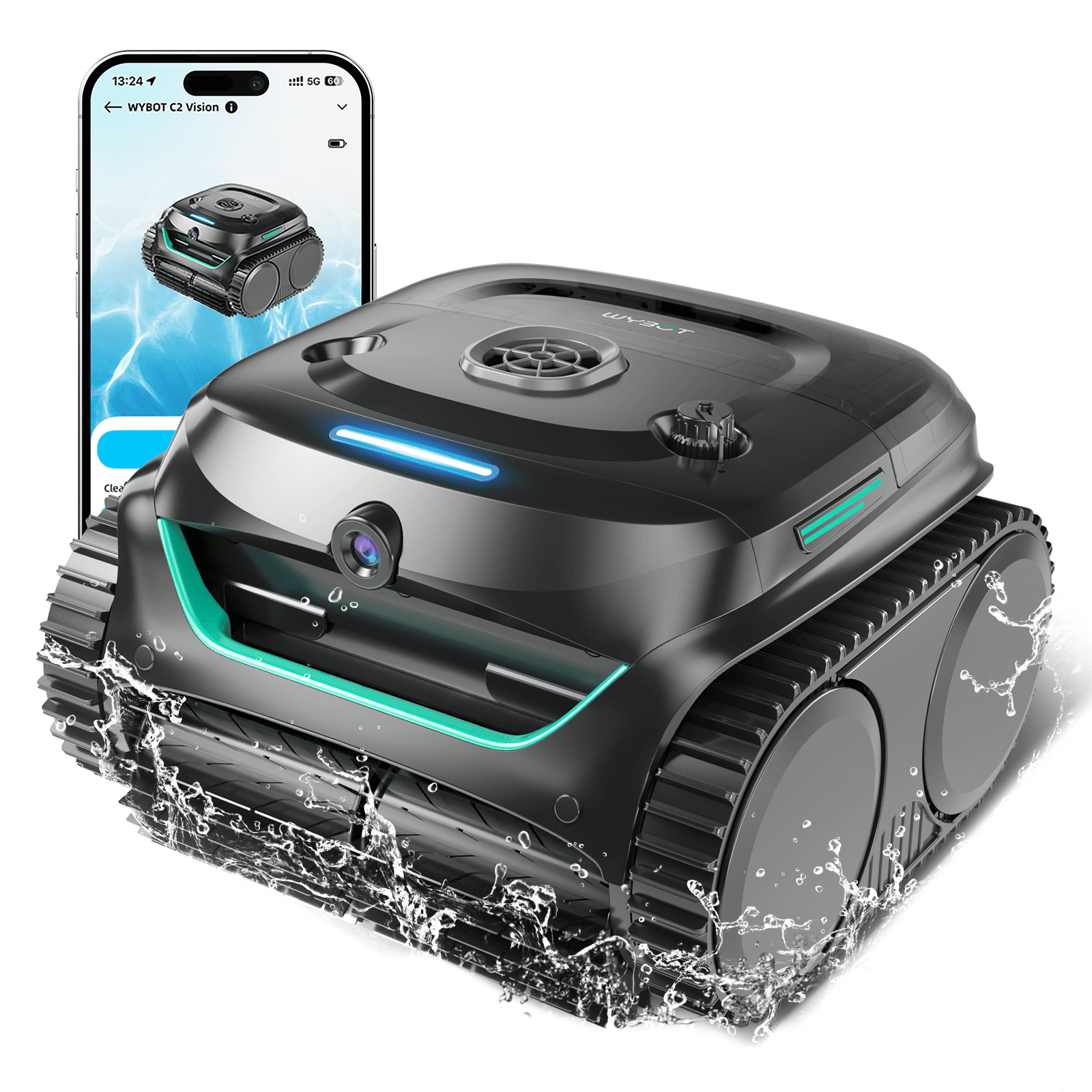 Robot de Piscine Sans Fil WYBOT C2 Vision avec Smart Vision, Navigation Intelligente, 8 Modes de Nettoyage, batterie longue durée
