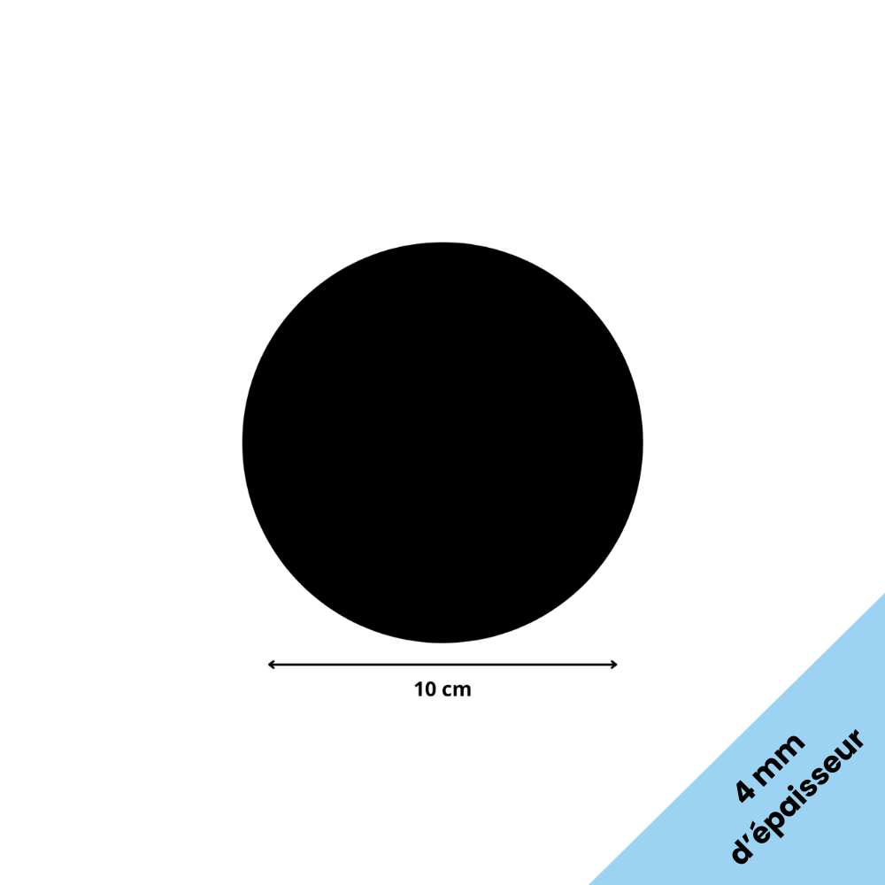 Plaque en verre acrylique ronde noir de 100mm, vendue à l’unité. Cette plaque a une épaisseur de 4 mm et est fabriquée en verre acrylique (PMMA), un matériau léger, solide, résistant aux UV et à l'humidité. Ce produit est adapté à de nombreux usages comme la décoration, le bricolage, la protection de surfaces, le modélisme ou encore la fabrication de cadres et vitrages. Le verre acrylique se découpe, se perce et se colle facilement, ce qui le rend simple à utiliser pour des projets personnalisés en intérieur comme en extérieur. Cette plaque est livrée avec un film protecteur sur chaque face, qu’il faut impérativement retirer avant utilisation pour obtenir une surface lisse, brillante et propre. Cette matière est une alternative pratique et résistante au verre, avec une manipulation plus sûre et plus souple.