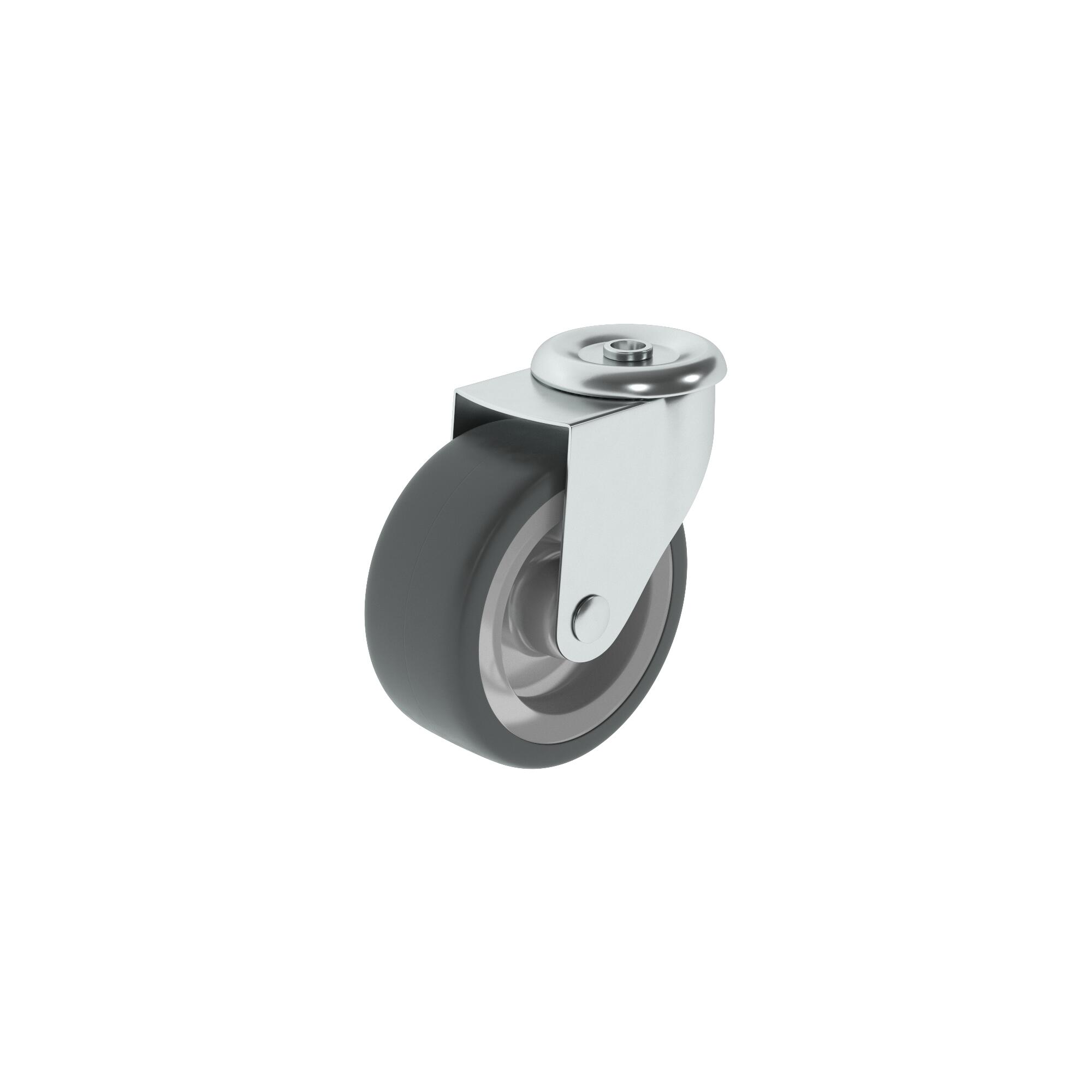 Cette roulette de 75 mm de diamètre avec œil convient à des charges légères. Elle suivra vos mouvements grâce au pivot à 360 °. Avec son revêtement en caoutchouc, la roulette ne laissera aucune trace sur votre sol et ne fera pas de bruit lorsque vous roulez. Recommandée pour les sols comme le carrelage, parquet, sol stratifié ou linoléum. Egalement recommandée pour les sols durs tels que béton ou autre sol dur extérieur. Assurez-vous d'estimer le poids total que vos roulettes devront prendre en charge afin de choisir le bon modèle.