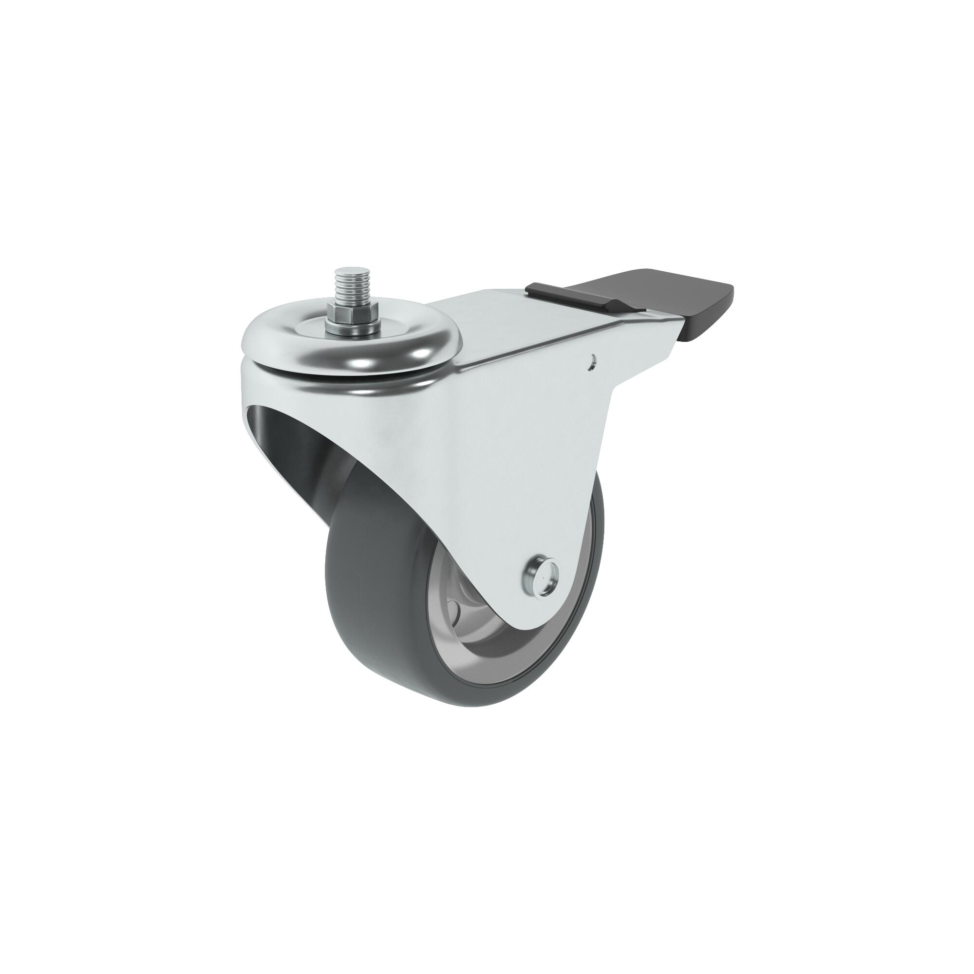 Roue 360 degrés à tige filetée diam.75 mm avec frein
