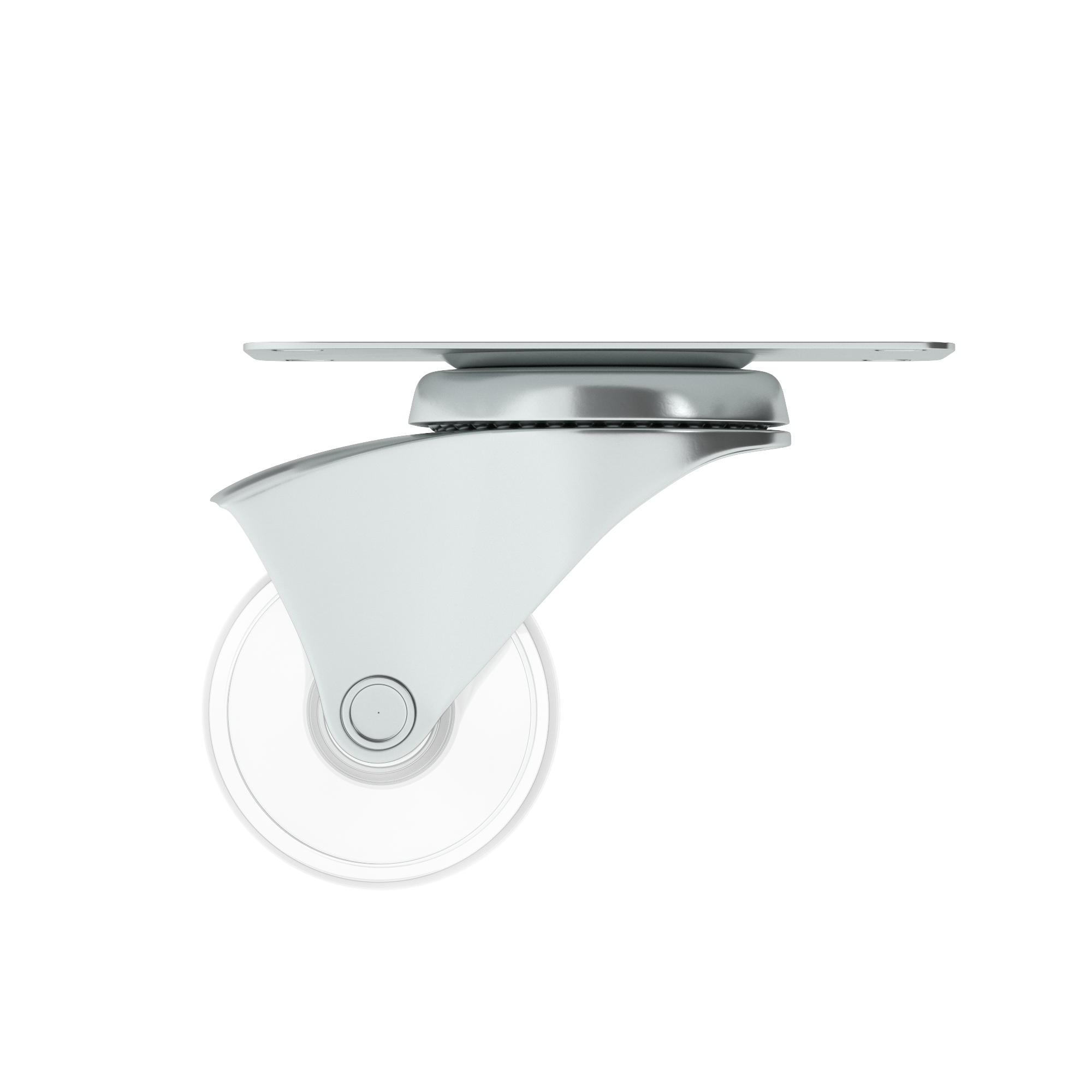 Cette roulette de diamètre de 35 mm avec platine convient à des charges légères. Elle suivra vos mouvements grâce au pivot à 360 °. Avec son caoutchouc transparent, elle ne laissera aucune trace sur votre sol et ne fera pas de bruit lorsque vous roulez. Recommandée sur les sols comme le carrelage, parquet, sol stratifié ou linoléum. Mais également sur les sols durs tels que béton ou autre sol dur extérieur. Assurez-vous d'estimer le poids total que vos roulettes devront prendre en charge afin de choisir le bon modèle.