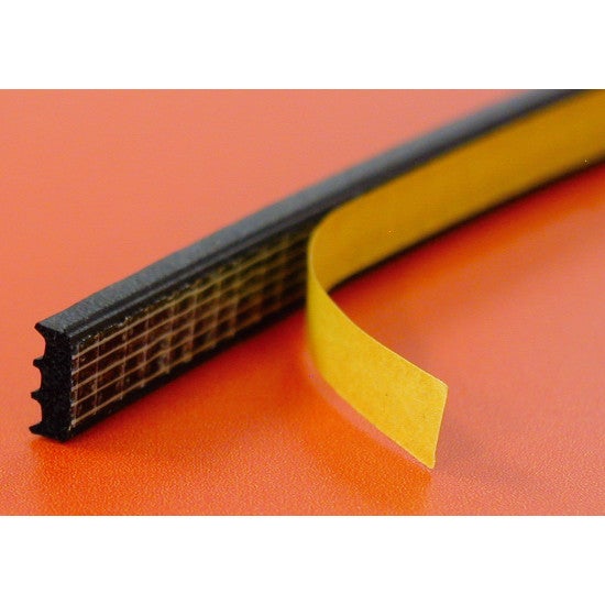 Joint d'étanchéité extrudé autocollant en caoutchouc alvéolaire permettant la pose à sec de vitrage isolant.