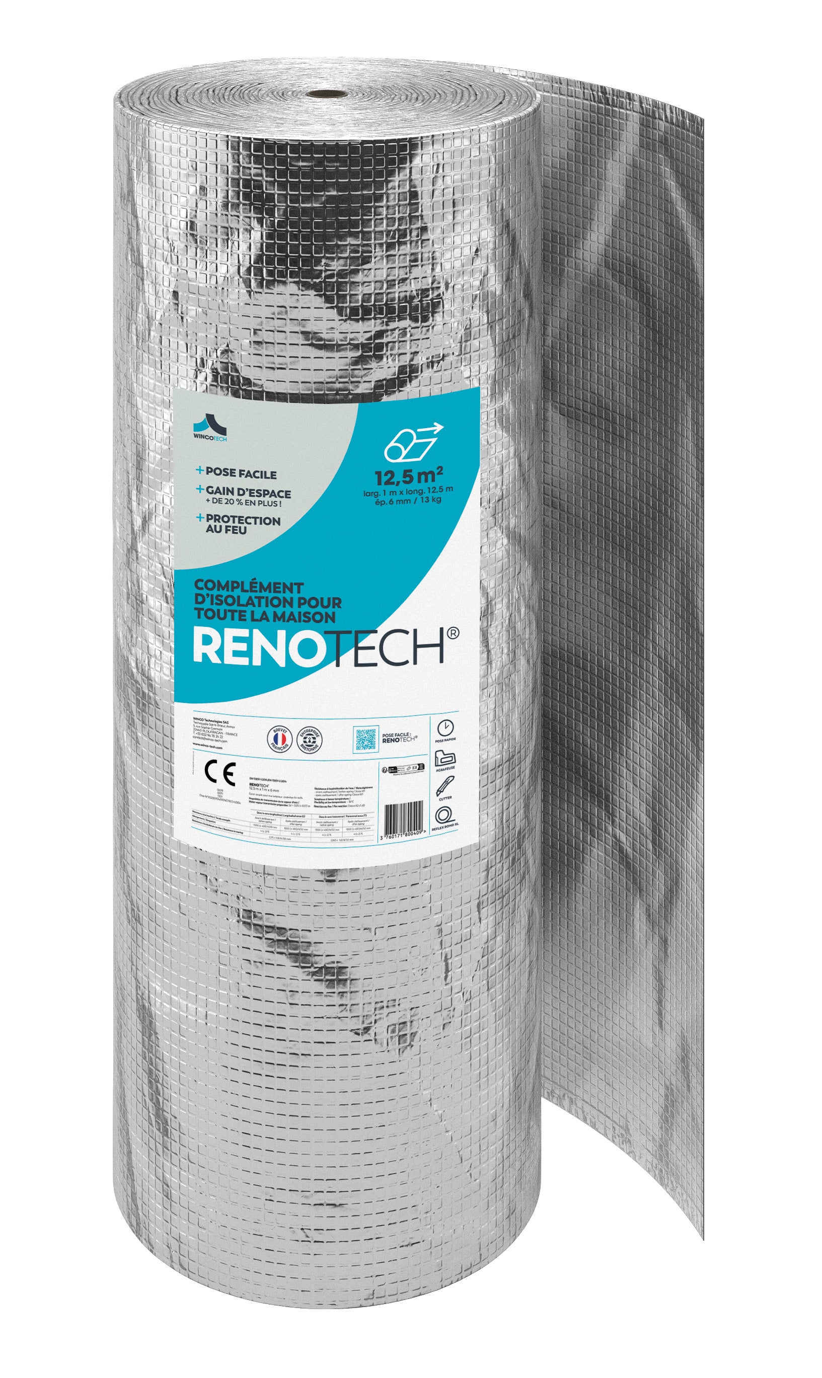 Complément d'isolation : performance égale à 140 mm de laine de verre non revêtue (0,035 W/mK) grâce à ses 2 parements en aluminium pur hautement réflectif à 95% et à sa membrane d’’étanchéité à l’air. Hautement perméable à la vapeur d'eau et non combustible il prévient tout risque de condensation et de départ de feu. A associer avec un isolant sans pare-vapeur intégré (laine de verre, de roche ou de bois non parementée kraft ou aluminium). 2 en 1, il est à la fois complément d’isolation et membrane pare-pluie, sous-toiture ou d’étanchéité à l’air.