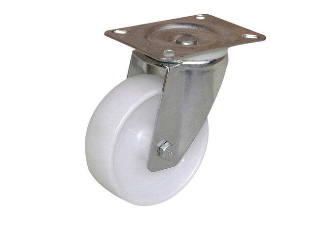 Cette roulette de diamètre 80, convient parfaitement pour des charges moyennement lourdes (80 kg). Son bandage dur permet une utilisation sur un sol intérieur souple. Son bandage est non tâchant et la roulette résiste à l’humidité. Sa platine montée sur une double couronne de billes en fait une roulette très maniable.