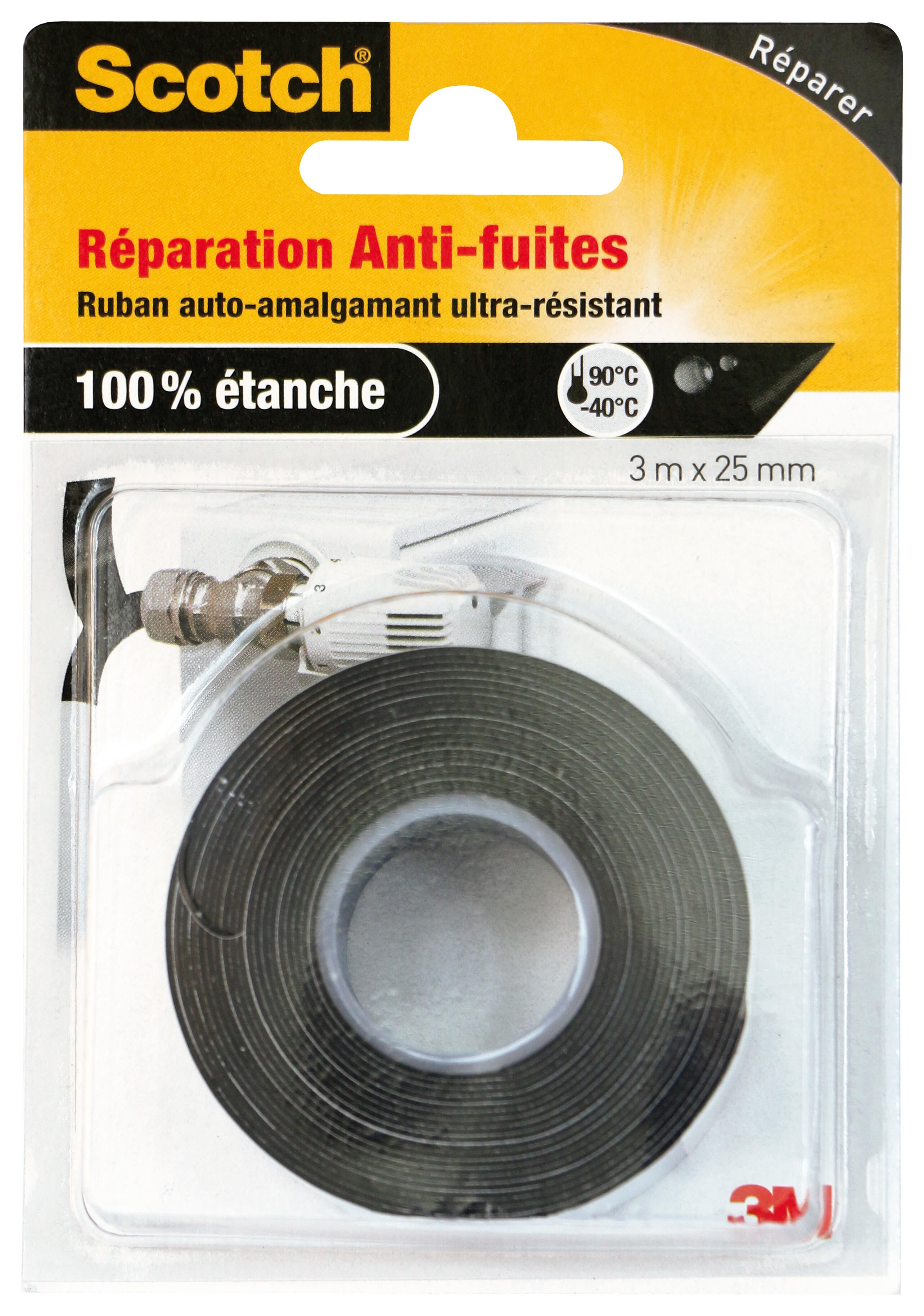 3M Scotch™ auto-amalgamant noir 3mx25mm. Ruban de Réparation Anti-Fuites. 100 % étanche.