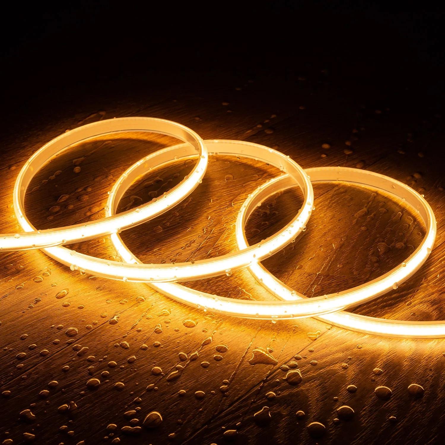 Ruban LED Dimmable 220V COB Auto-redressement 320 LED/m 8W/m 720 lm/m Largeur 12mm Coupe 50cm IP65 CRI90 Sur mesure 2200K Super chaud 25 m