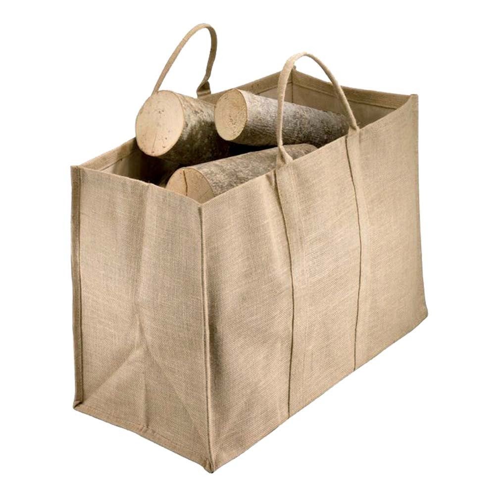 Sac à bûches en toile de jute - 64 x 30 x 39 cm - Transport bois de chauffage, pliable