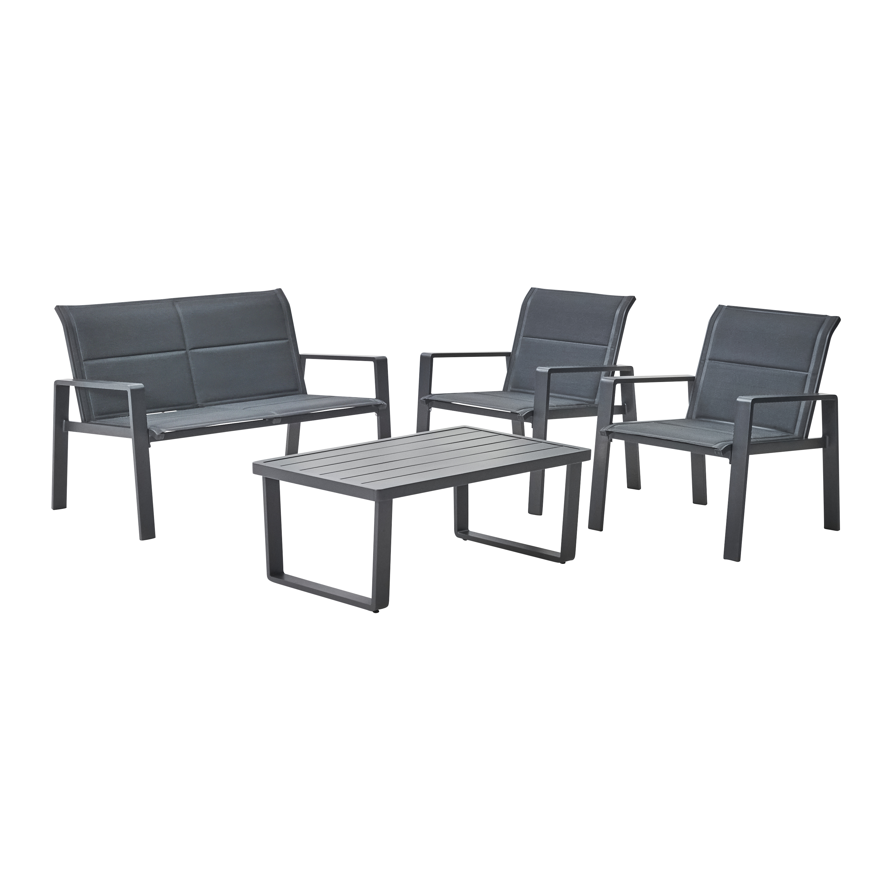 Salon bas de jardin Aramis en aluminium/textilène gris, 4 personnes