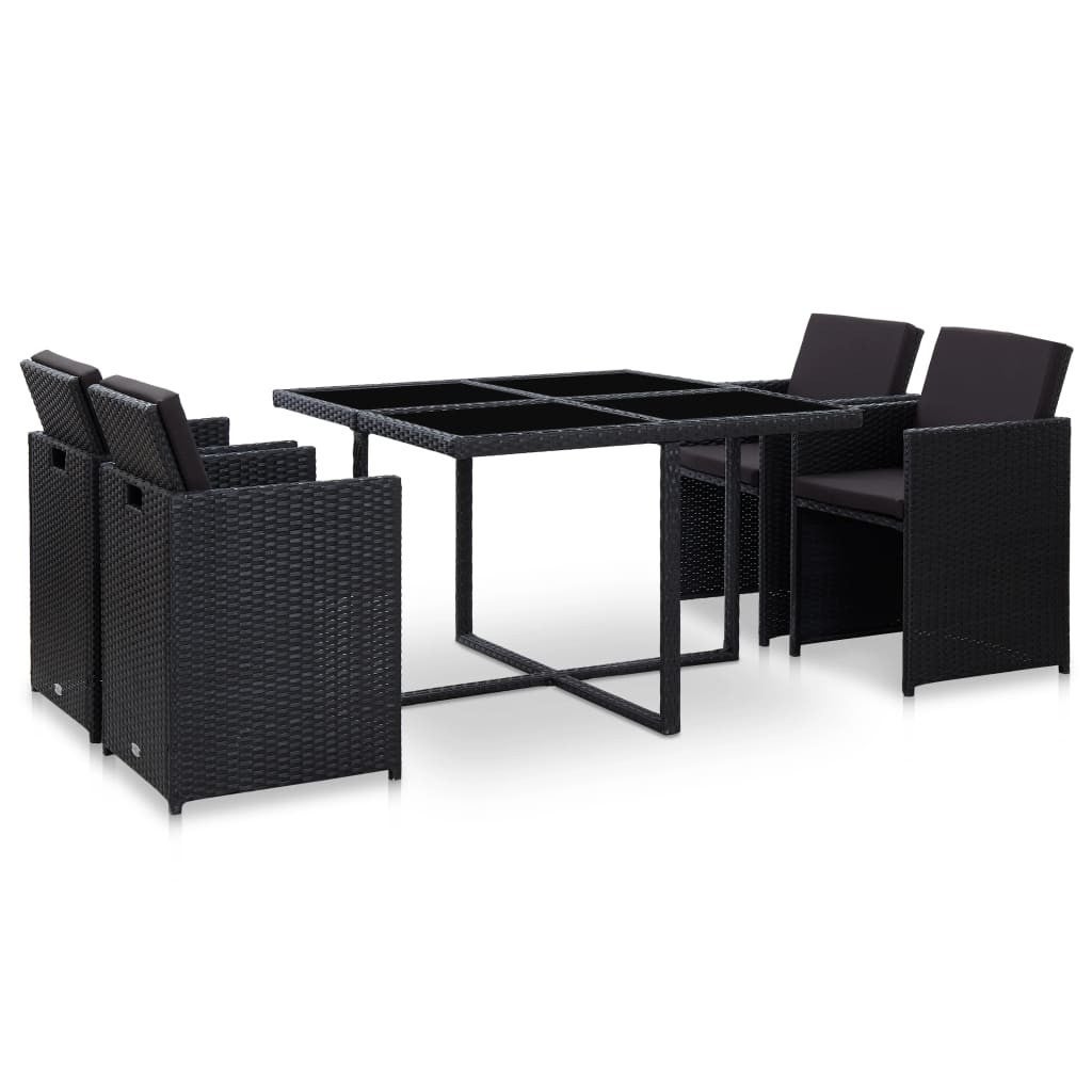 Salon de jardin 5 pcs avec coussins Résine tressée Noir 36