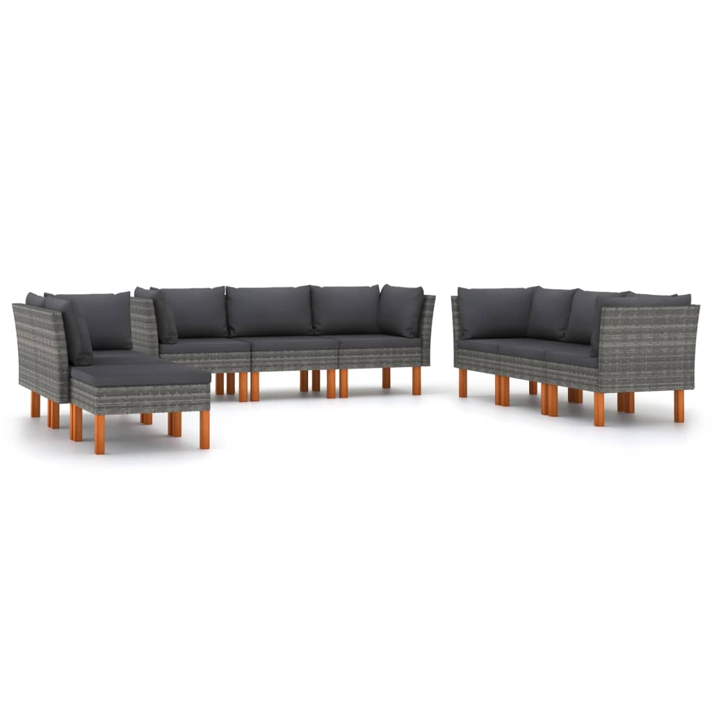 Salon de jardin 9 pcs avec coussins Résine tressée Gris 32