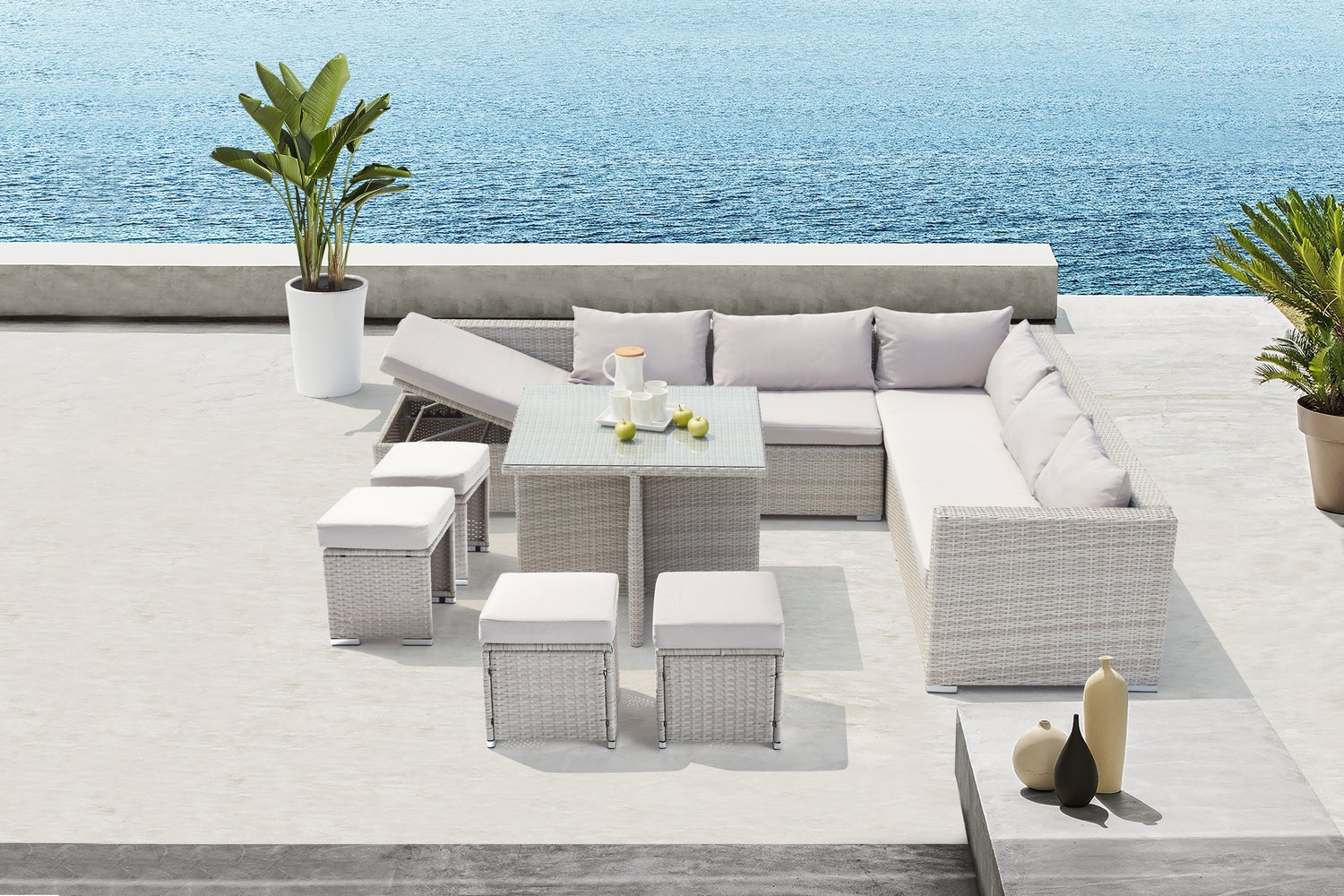 Salon de jardin encastrable 10 places en résine tressée gris SAMOA