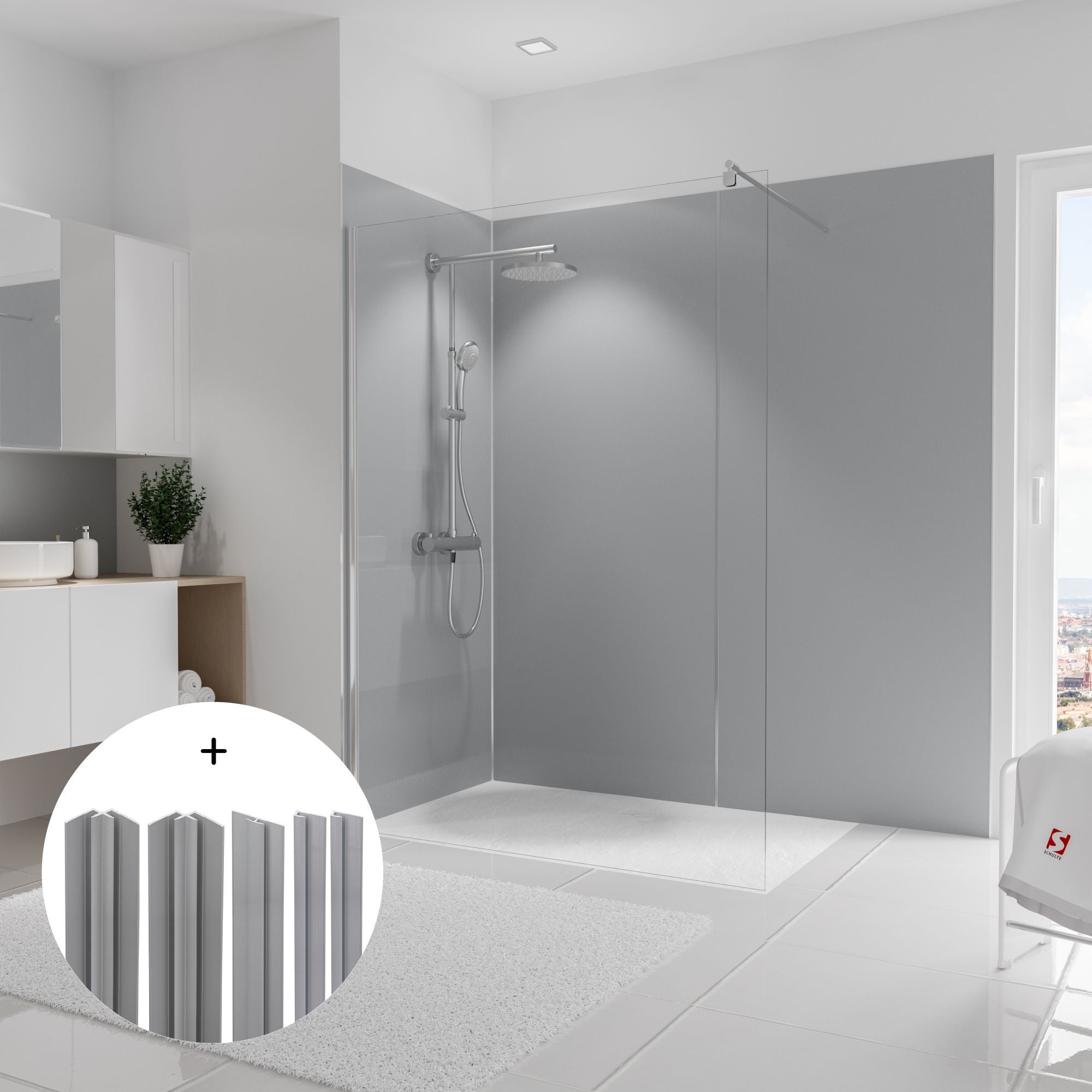 Schulte pack de 3 panneaux muraux 90x210 cm + 5 profilés, revêtement pour douche et salle de bains, placement facile, DécoDesign COULEUR, gris argenté