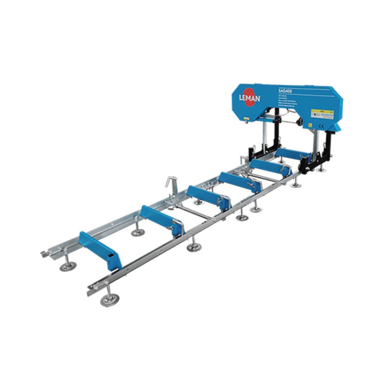 Livraison gratuite Scie à grume LEMAN SAG400 400mm 2200W Mise en garde : utilisation uniquement en extérieur Scierie mobile compacte conçue pour les menuisiers et les particuliers Idéale pour la fabrication de planches, madriers et poutres Moteur asynchrone, endurant et silencieux Machine livrée avec une extension de rails de 1,48 m pour une longueur de coupe totale de 2,35 m. Extensions supplémentaires disponibles en option pour différentes longueurs de coupe Ensemble de serrage réglable permettant de maintenir le tronc en toute sécurité Chariot de coupe à avance manuelle équipé de pattes anti-basculement Réglage manuel de la hauteur de coupe par manivelle avec graduation Volants en fonte d’acier avec une brosse de nettoyage pour chacun d’entre eux Système de refroidissement et de lubrification permettant de garder la lame propre, sans résine Réglage de la tension de la lame par une poignée ergonomique Contacteur de sécurité sur le protecteur de lame Puissance 2200 W - S1 et tension 230V La machine est livrée avec 1 lame 4 TPI, système de lubrification, 1 extension de rail de 1480 mm, système de maintien du tronc, clés de service et notice d’utilisation Caractéristiques techniques Scie à grume LEMAN SAG400 400mm 2200W Puissance moteur (230 V - 50 Hz): 2200 W - S1 Encombrement: 1360 x 3020 x 1270 mm Vitesse de rotation: 2800 tr/min Hauteur de coupe minimale/maximale: 50 mm / 400 mm Dimensions de la lame: 2750 x 19-22 x 0,9 mm Diamètre des volants: 350 mm Vitesse de coupe: 14 m/s Largeur de coupe: 380 mm Profondeur de coupe: 150 mm Diamètre de tronc maximum: 400 mm Longueur de tronc minimale/maximale: 550 mm / 2350 mm Chargement de la grume: Manuel Avance du chariot de coupe: Manuelle Pression Acoustique LpA: 85,1 dB(A) à vide Puissance Acoustique LwA: 104,2 dB(A) à vide Incertitude k: 4 dB(A) Classe de protection électrique: I Indice de protection: IP54 Poids net: 153 kg Colisage: 1560 x 520 x 750 mm Poids brut: 188 kg