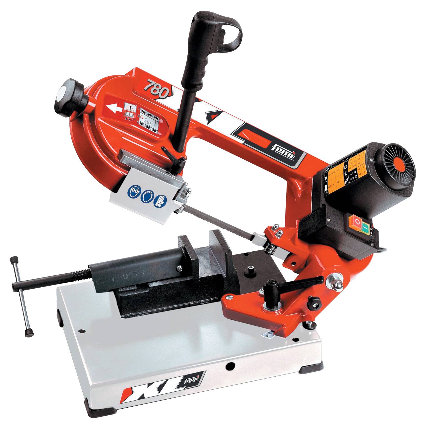 1XMod.780XLPortable. Descente manuelle des bras. Puissance 850W 230V - 50 Hz. 2 vitesses de commutation.