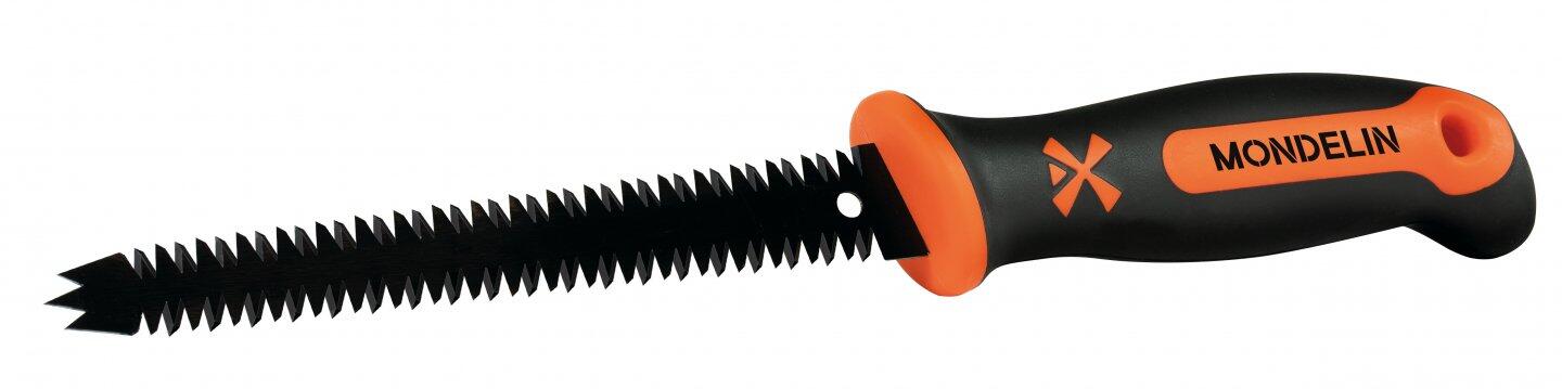 Double denture pour une coupe multidirectionnelle. Denture triple biseaux. Pointe en trident effilée pour un perçage facile et précis. Longueur de Lame 160 mm. Poignée ergonomique bi-matière. Utilisation : pour tous les professionnels du bâtiment, pour découper les plaques de plâtre, le bois, le PVC, le béton cellulaire.